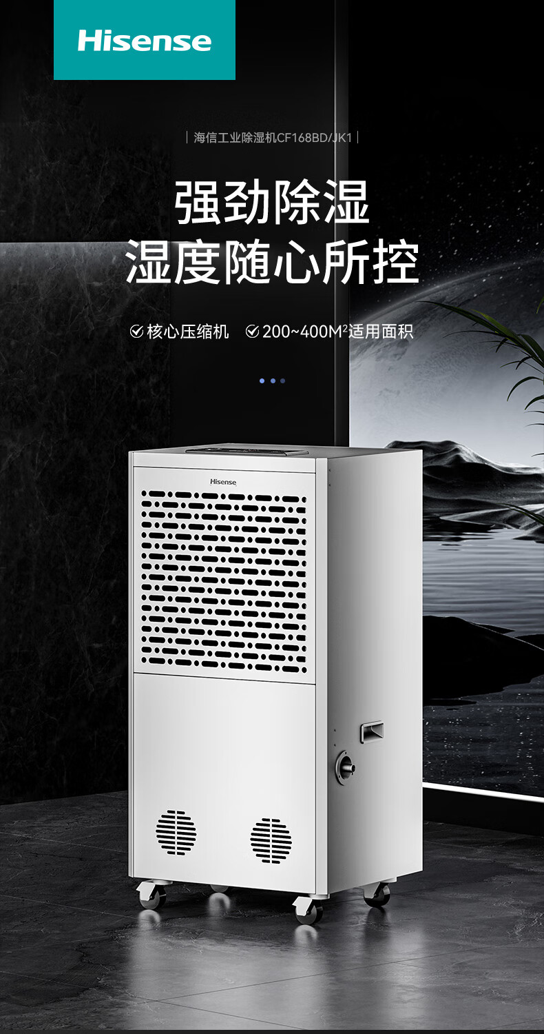 家用电器  > 生活电器  > 除湿机  >  海信/Hisense  >  海信工业除湿机168L/天 大面积仓库车间除湿器 别墅商场商住两用抽湿机 工厂储藏室地下车库 400㎡可用 CF168BD/JK1/台
