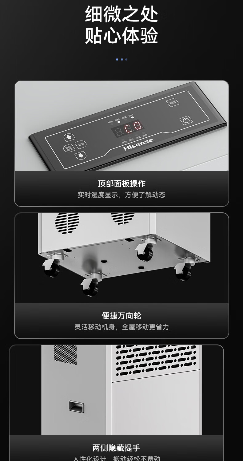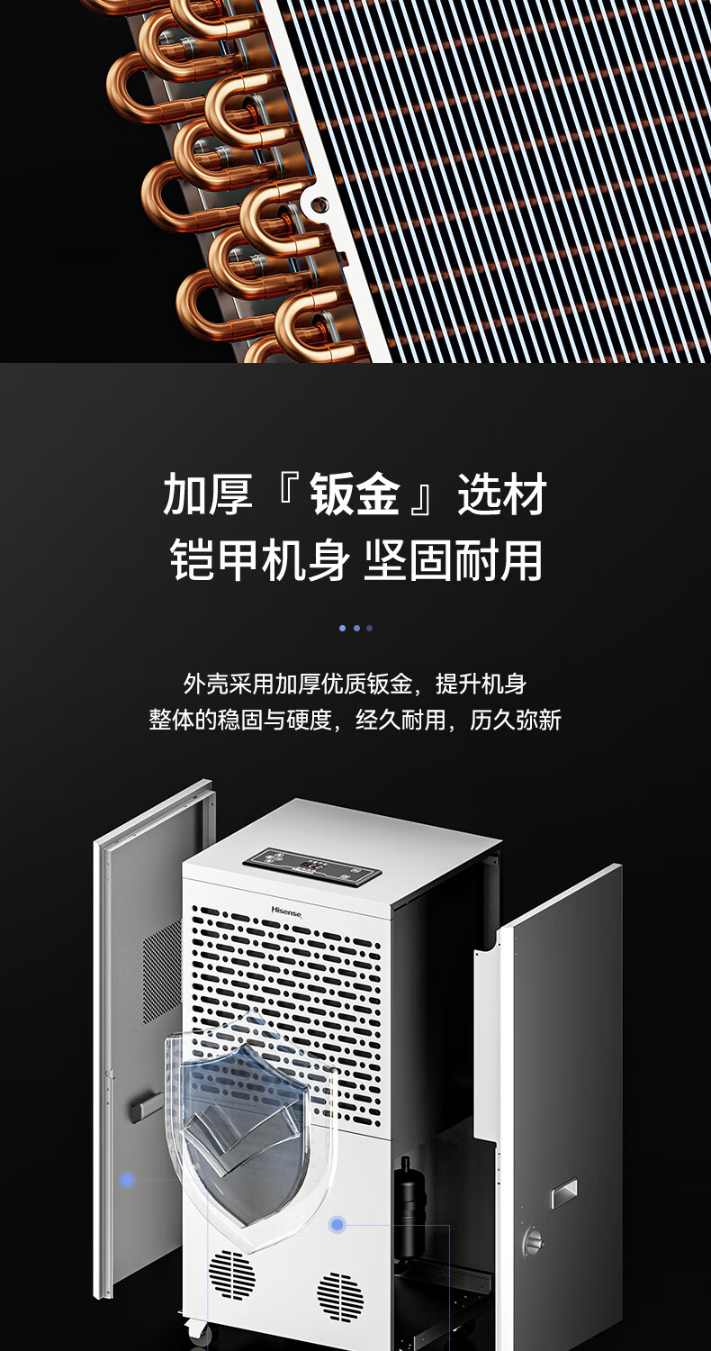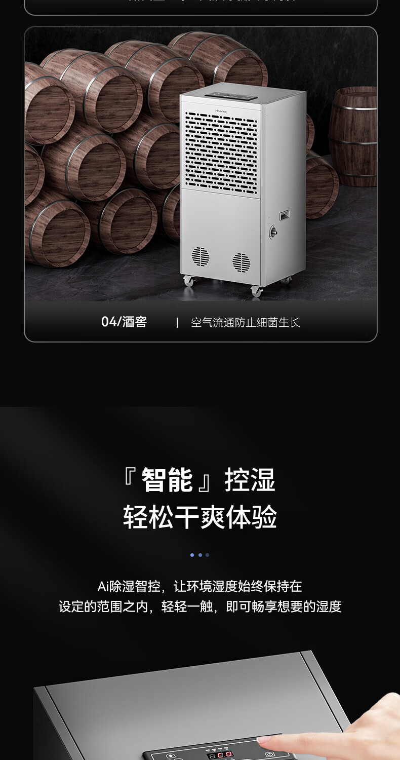 商品名称: 海信工业除湿机168L/天 大面积仓库车间除湿器 别墅商场商住两用抽湿机 工厂储藏室地下车库 400㎡可用 CF168BD/JK1/台