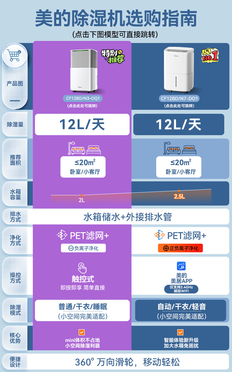家用电器  > 生活电器  > 除湿机  >  美的/MIDEA  >  美的(Midea)小海绵除湿机/抽湿机 【美芝压缩机】除湿量12升/天 家用轻音万向轮 干衣机除湿器CF12BD/N3-OQ1 CF12BD/N3-OQ1/台