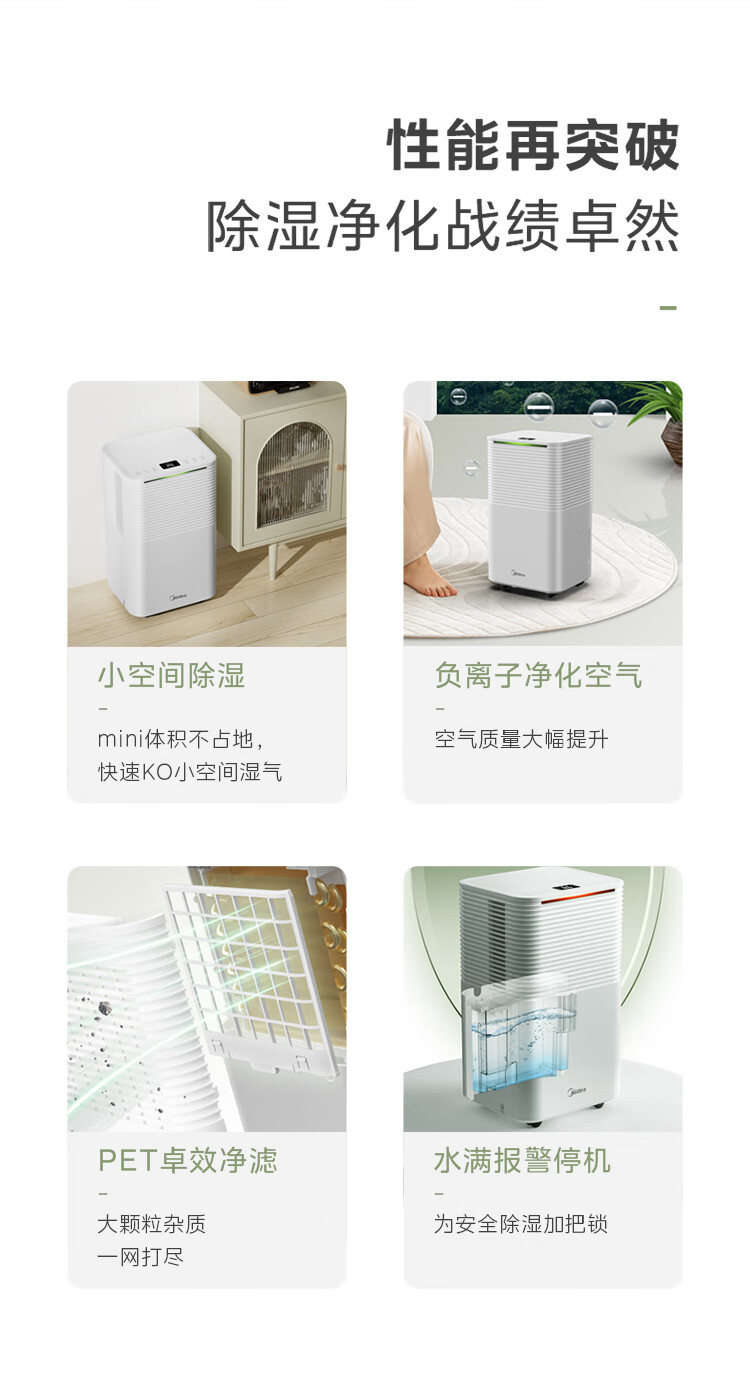 商品名称: 美的(Midea)小海绵除湿机/抽湿机 【美芝压缩机】除湿量12升/天 家用轻音万向轮 干衣机除湿器CF12BD/N3-OQ1 CF12BD/N3-OQ1/台