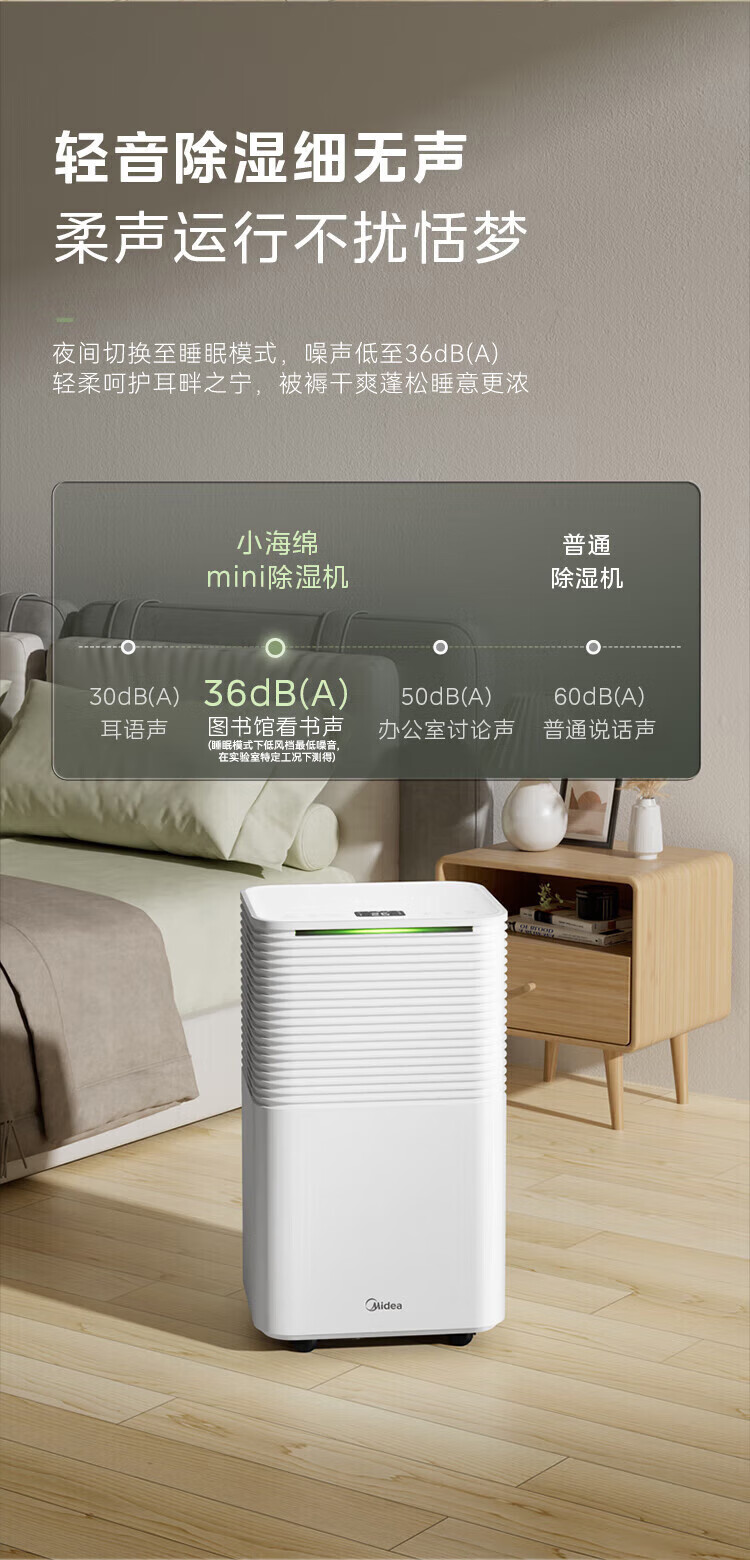 • 商品名称:美的(Midea)小海绵除湿机/抽湿机 【美芝压缩机】除湿量12升/天 家用轻音万向轮 干衣机除湿器CF12BD/N3-OQ1 CF12BD/N3-OQ1/台