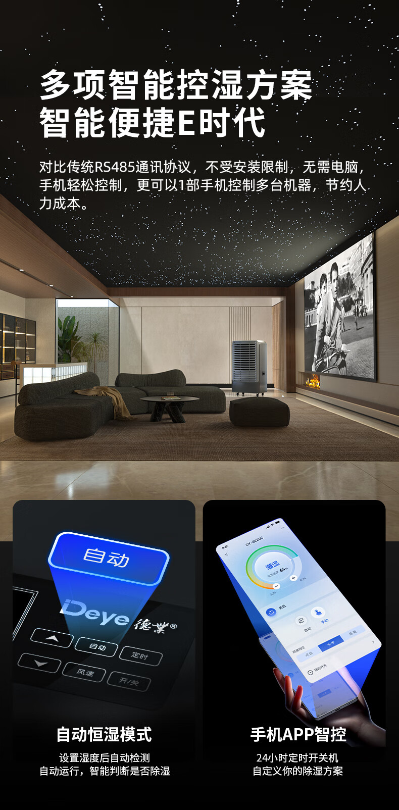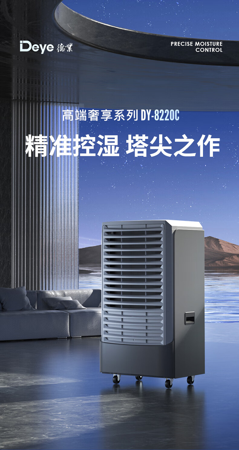 • 商品名称:德业(Deye)除湿机/抽湿机 适用300-500平方米 别墅地下室工业商用仓库16A大功率除湿器DY-8220C DY-8220C/台