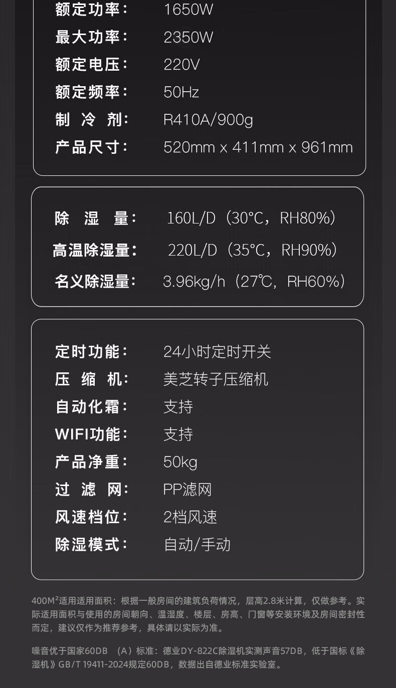 商品名称: 德业(Deye)除湿机/抽湿机 适用300-500平方米 别墅地下室工业商用仓库16A大功率除湿器DY-8220C DY-8220C/台