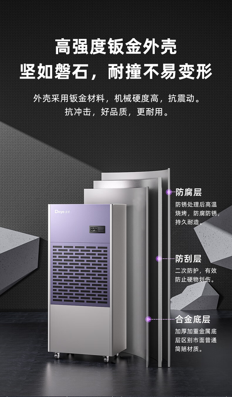 • 商品名称:德业(Deye)工业除湿机/抽湿机 适用500平面积 地下停车库吸湿器工商业车间仓库干燥机DY-8240C DY-8240C/台