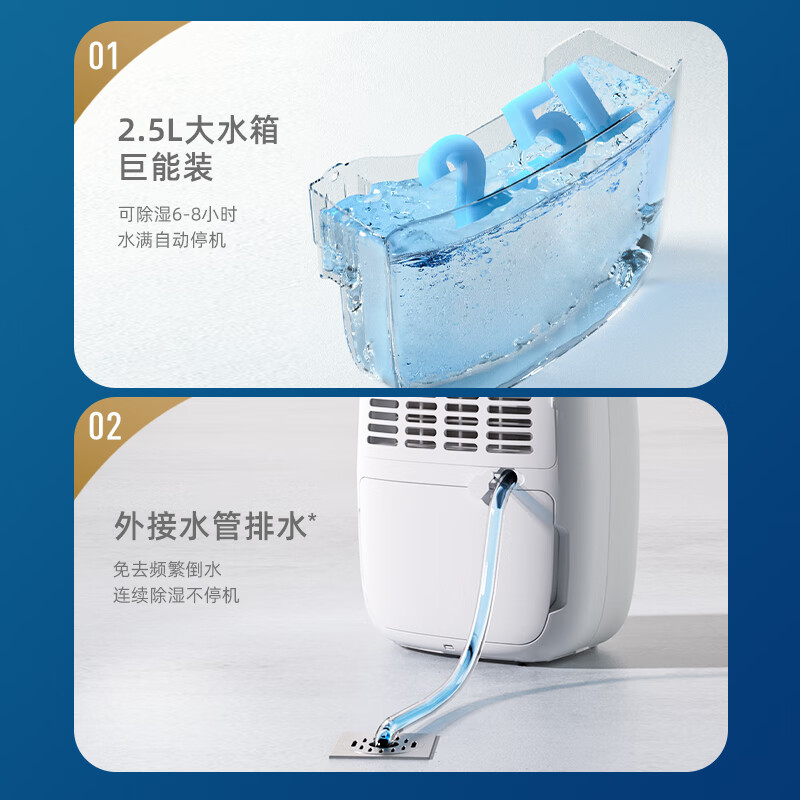 包装清单: 除湿机×1,说明书(内含保修卡、合格证)×1,60cm水管×1