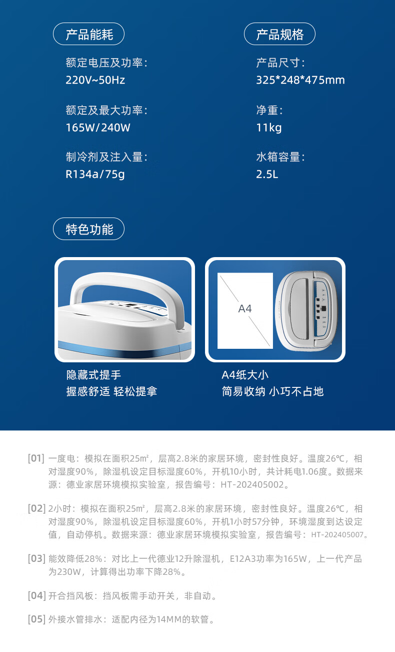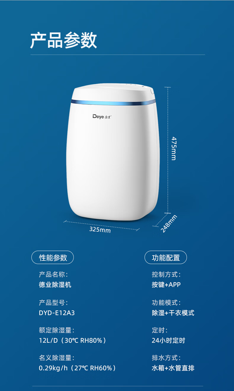 • 商品名称:德业(Deye)除湿机/抽湿机 除湿量12升/天 家用轻音吸湿器地下室干燥机干衣净化 wifi手机控制DYD-E12A3 DYD-E12A3/台