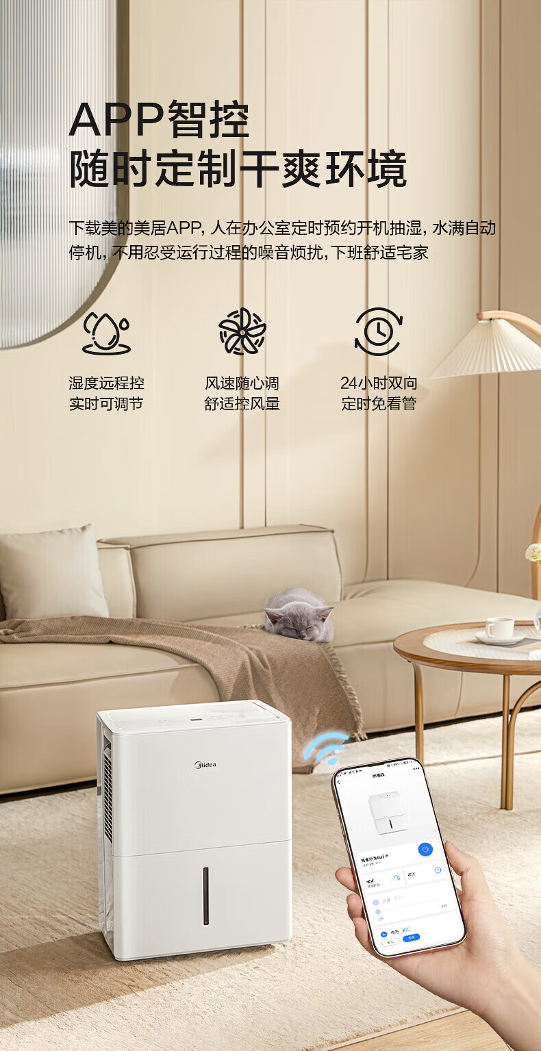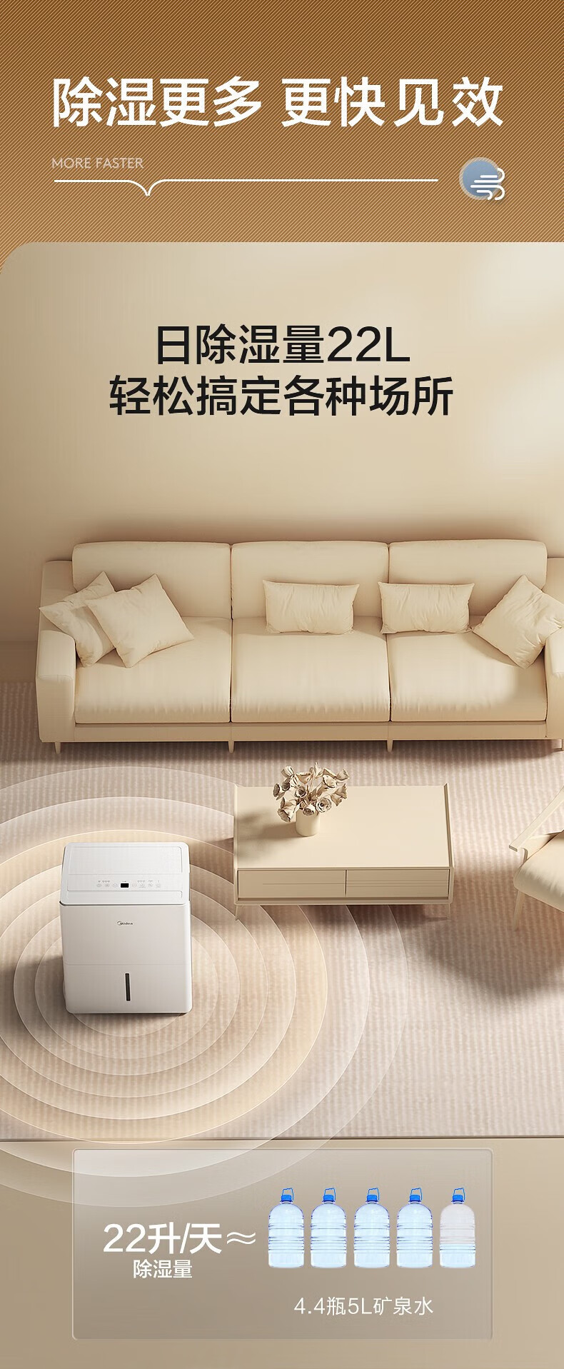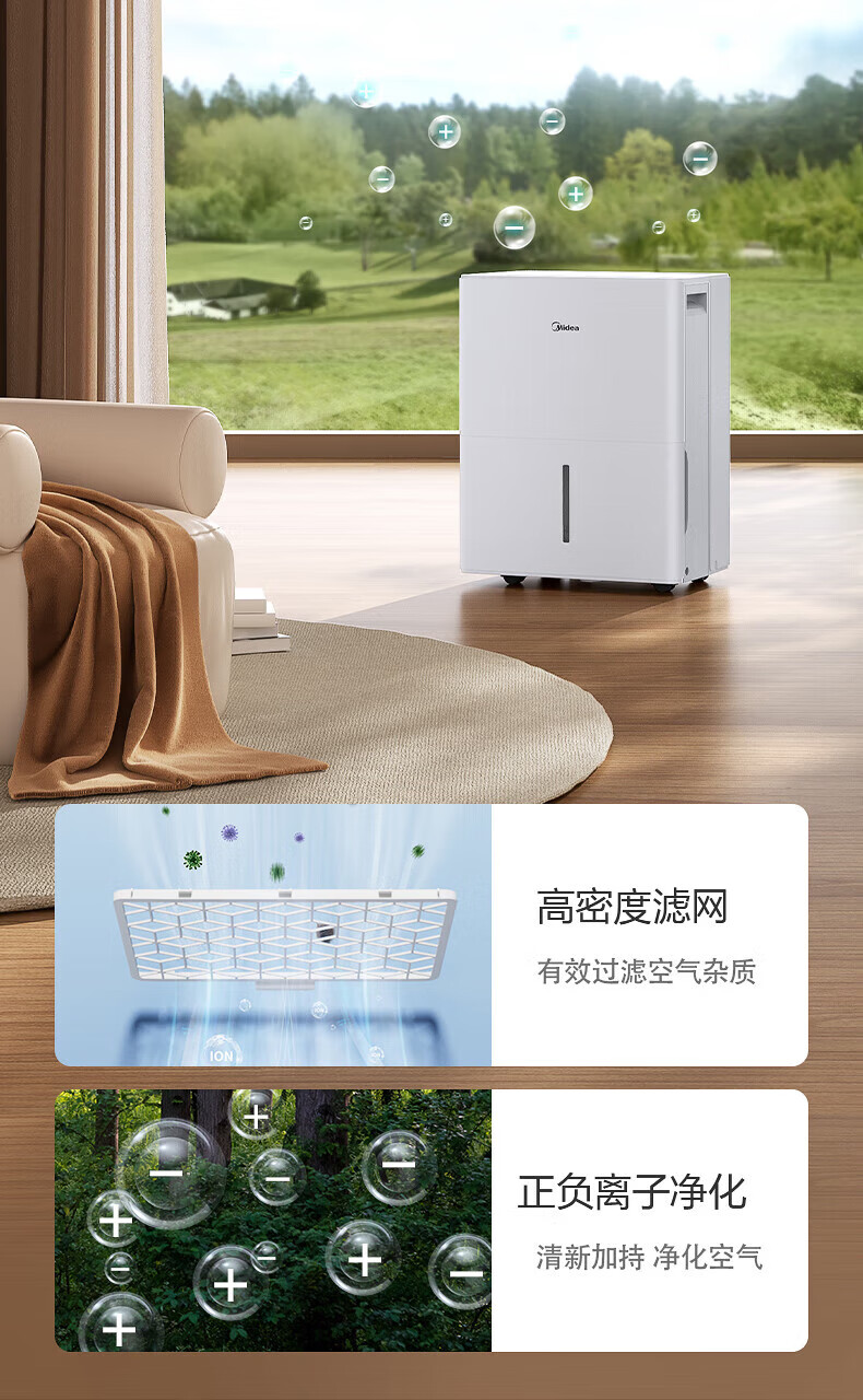 美的(Midea)除湿机抽湿机WIFI负离子除菌地下室内工业去湿干衣净化家用轻音全屋除湿器 22L/天 CF22BD/N1-DP7 CF22BD/N1-DP7/台