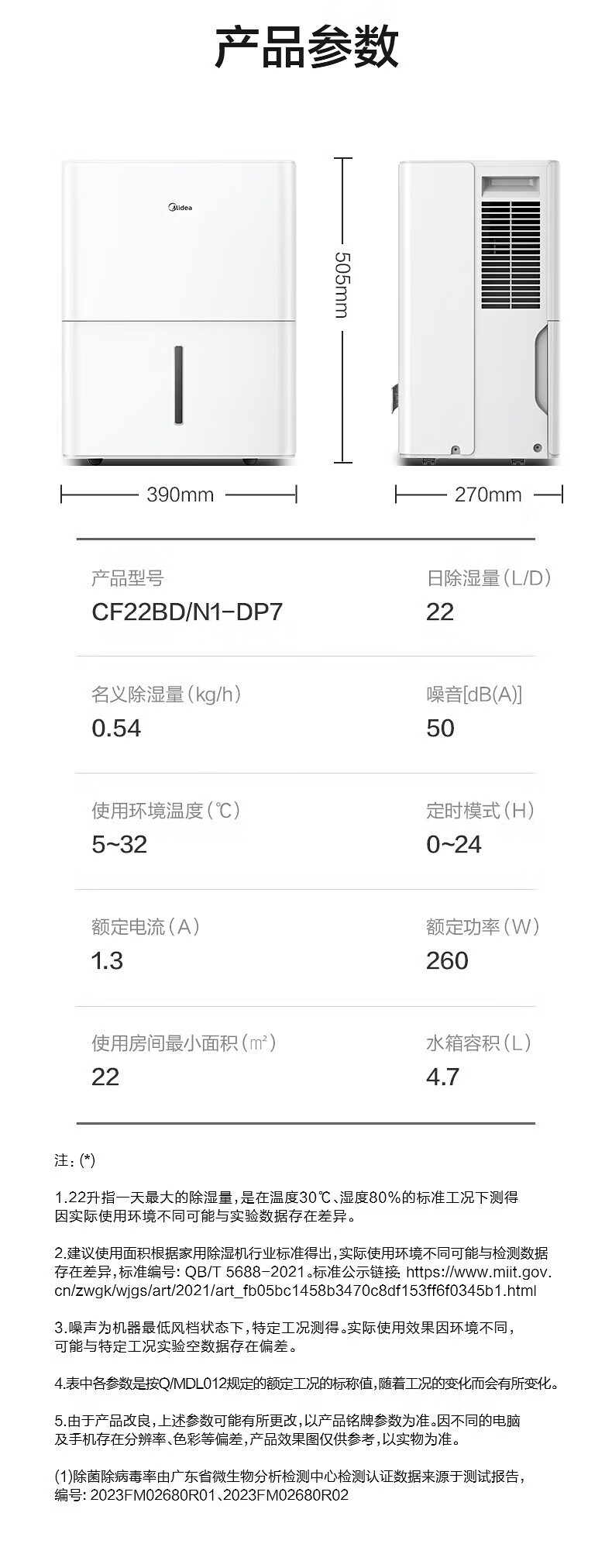 商品名称: 美的(Midea)除湿机抽湿机WIFI负离子除菌地下室内工业去湿干衣净化家用轻音全屋除湿器 22L/天 CF22BD/N1-DP7 CF22BD/N1-DP7/台