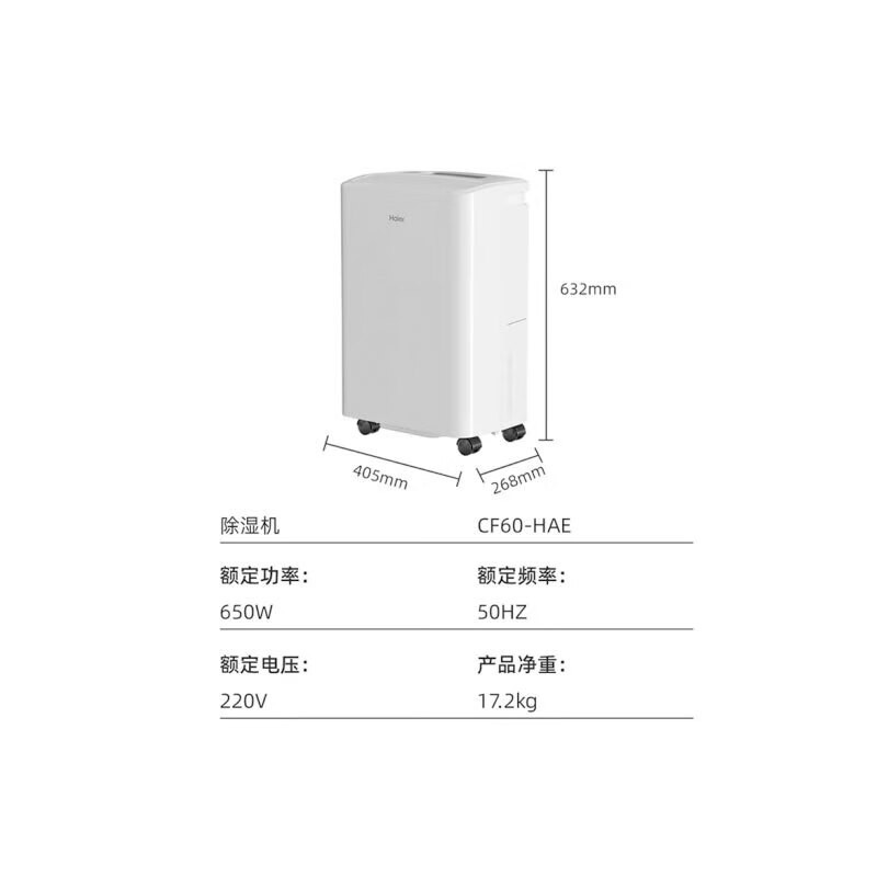 商品名称: 海尔除湿机 家用轻音防霉防潮地下室档案室干燥机 干衣机 60L/天 120-180㎡ CF60-HAE CF60-HAE/台