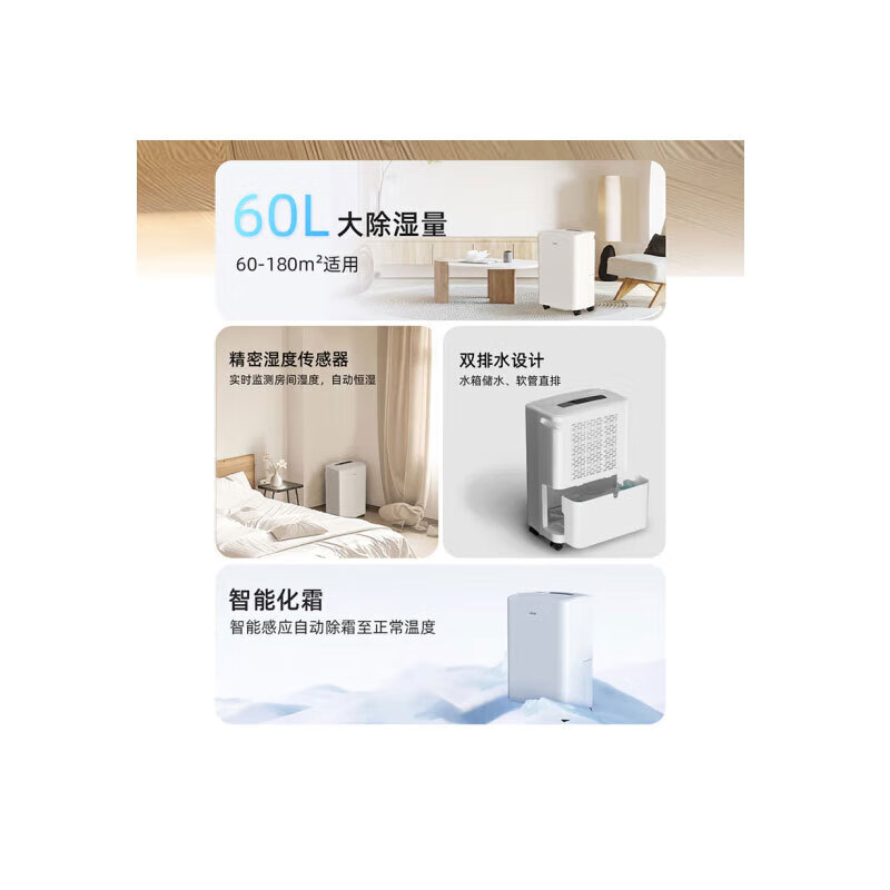 • 商品名称:海尔除湿机 家用轻音防霉防潮地下室档案室干燥机 干衣机 60L/天 120-180㎡ CF60-HAE CF60-HAE/台