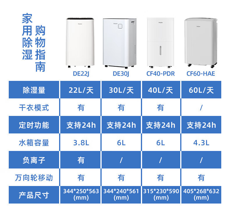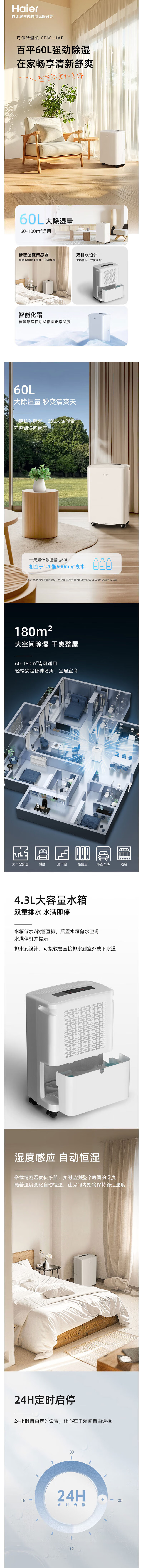 家用电器  > 生活电器  > 除湿机  >  海尔/Haier  >  海尔除湿机 家用轻音防霉防潮地下室档案室干燥机 干衣机 60L/天 120-180㎡ CF60-HAE CF60-HAE/台