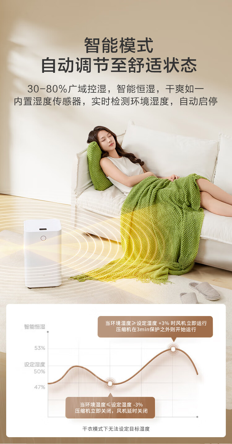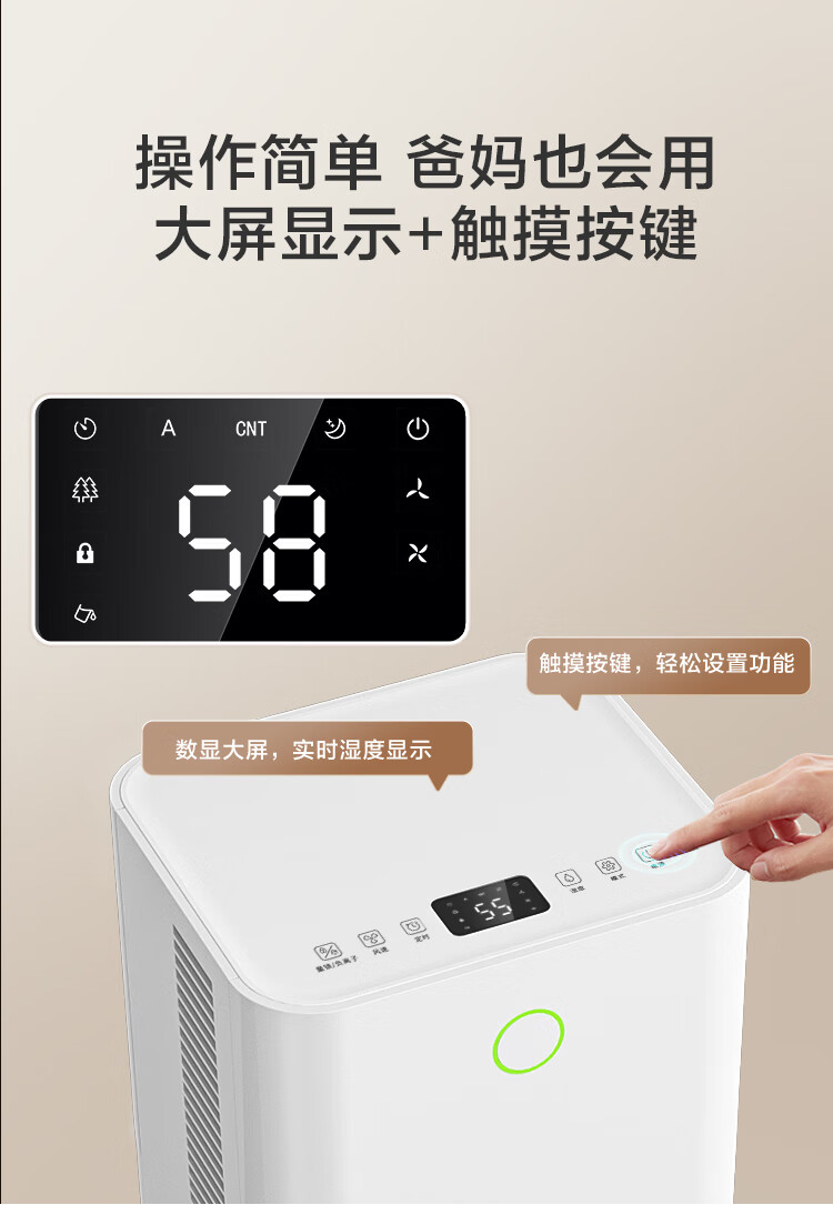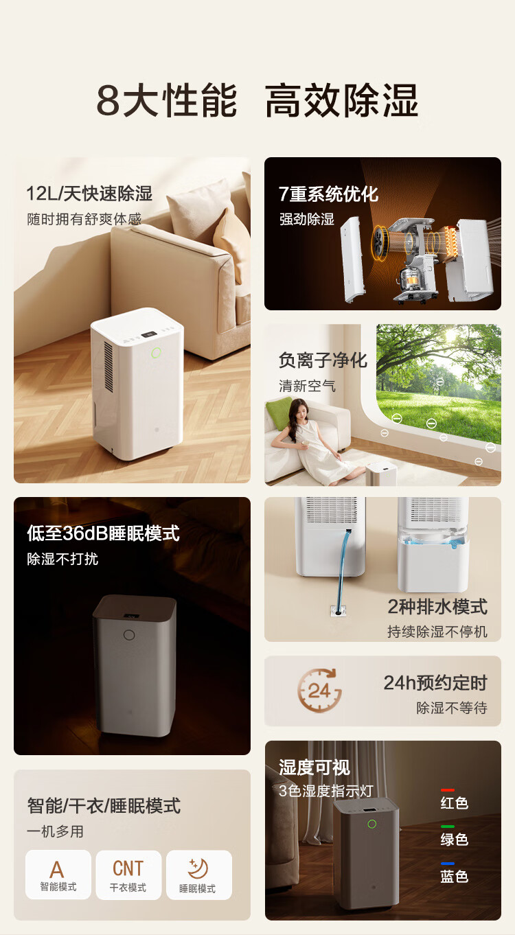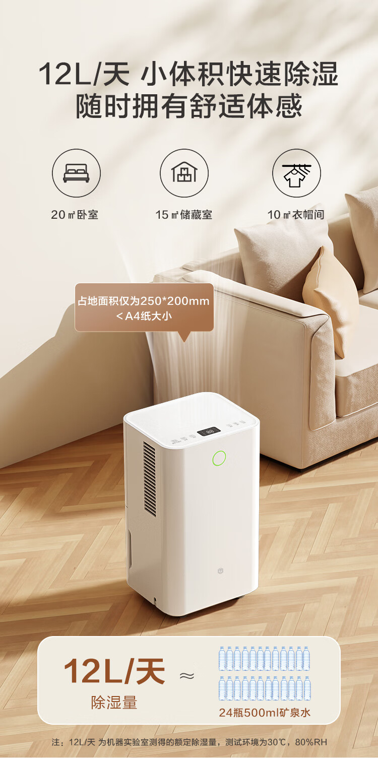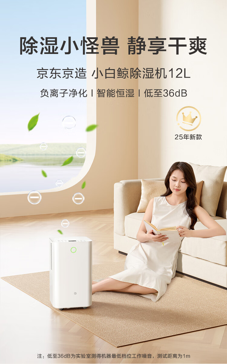 商品名称: 京东京造除湿机/抽湿机家用除湿器 12L/天除湿量 【美芝压缩机】负离子净化除菌 卧室轻音除潮 智能干衣机 OL12-D031N/个