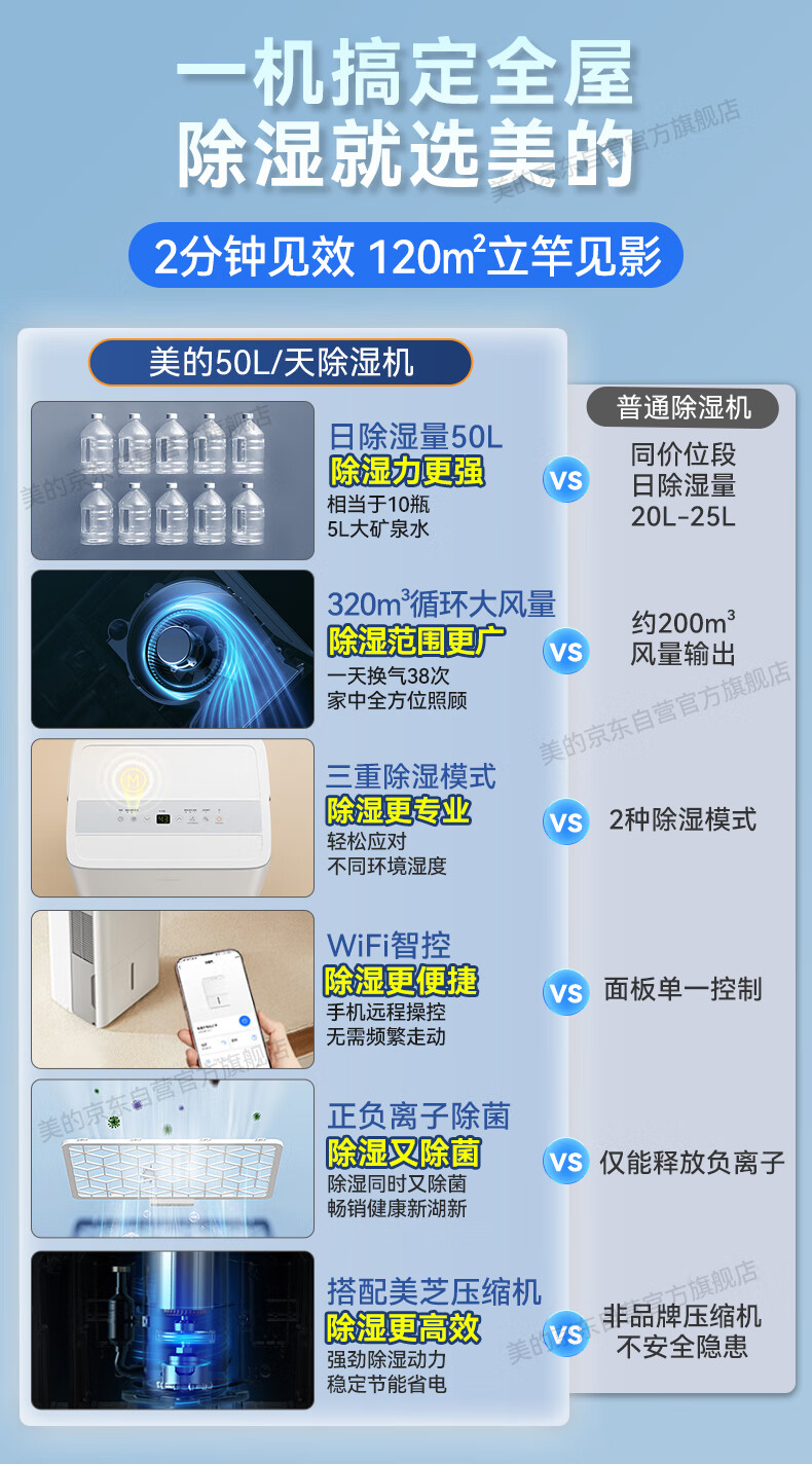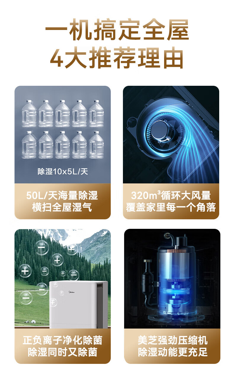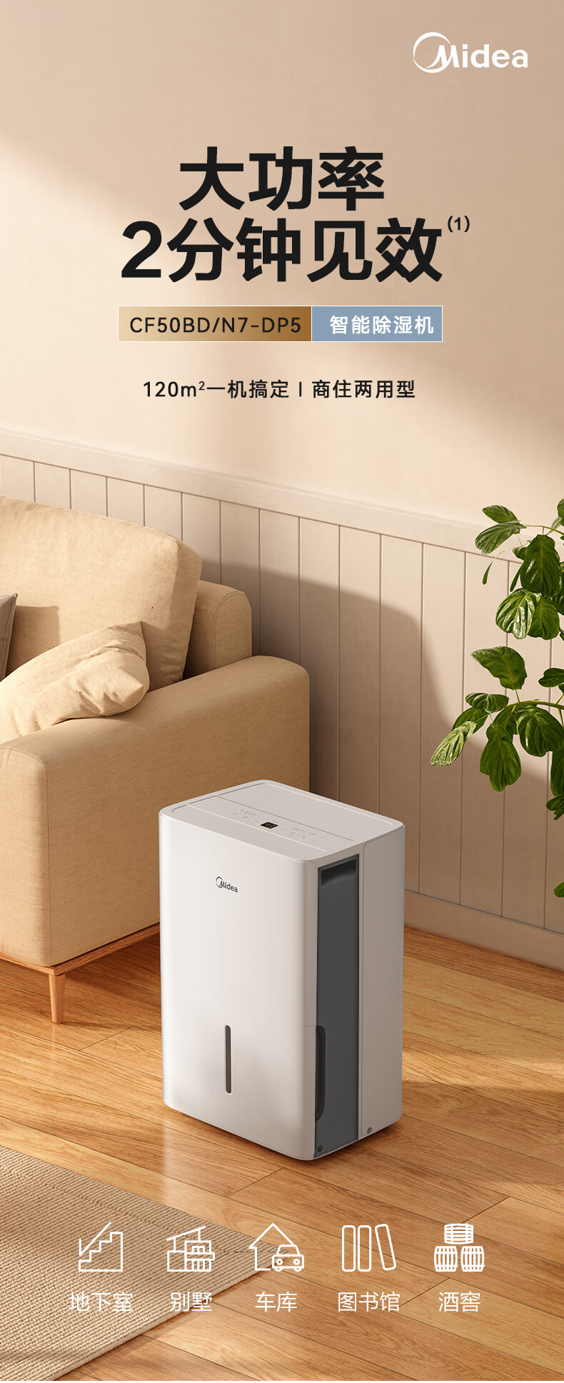 • 商品名称:美的(Midea)50升/天除湿机/抽湿机 2分钟见效 App智控 家用轻音除湿器 地下室别墅工业抽湿机CF50BD/N7-DP5 CF50BD/N7-DP5/台