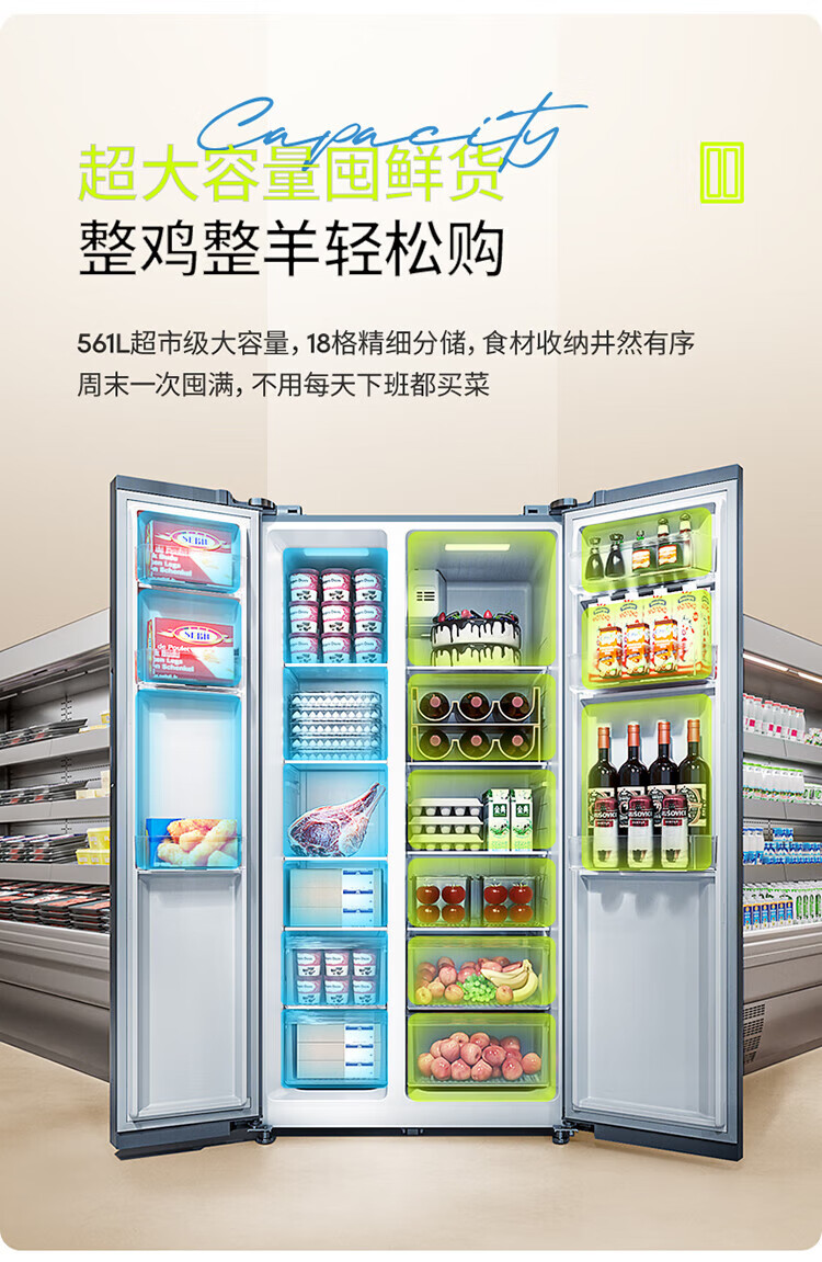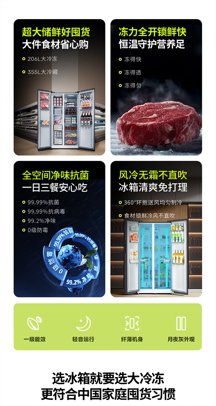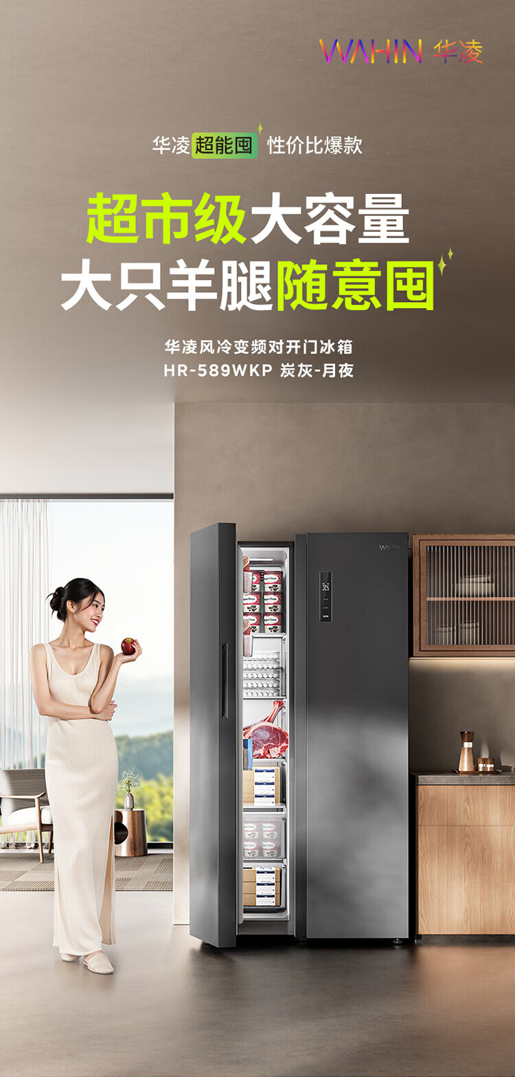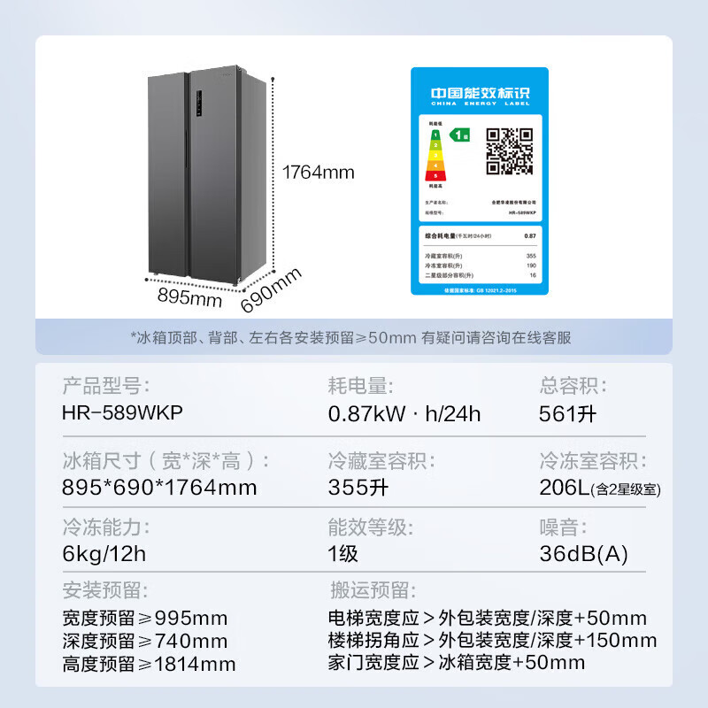 家用电器  > 大家电  > 冰箱  >  美的/MIDEA  >  美的子品牌华菱对开门双开门家用节能一级能效变频风冷无霜净味超薄大容量冰箱 HR-589WKP灰 HR-589WKP/台