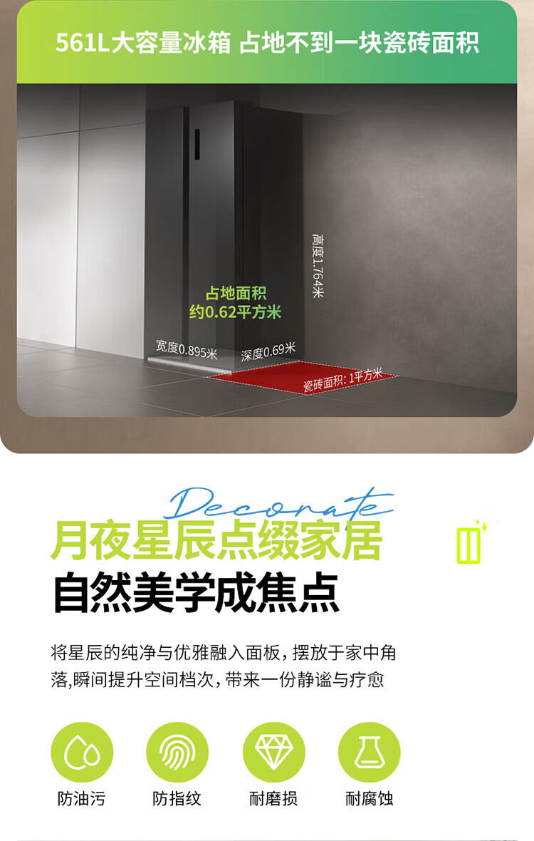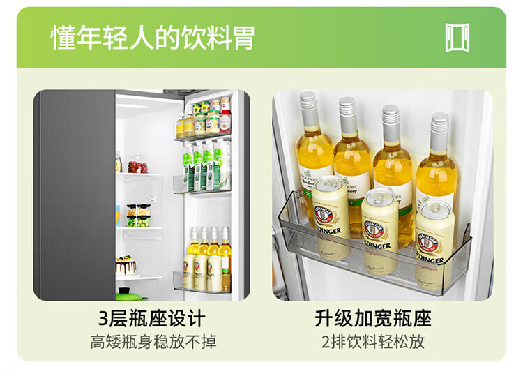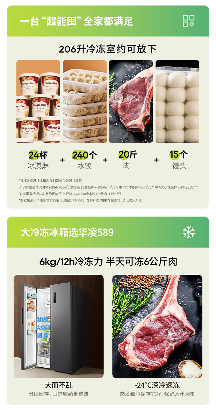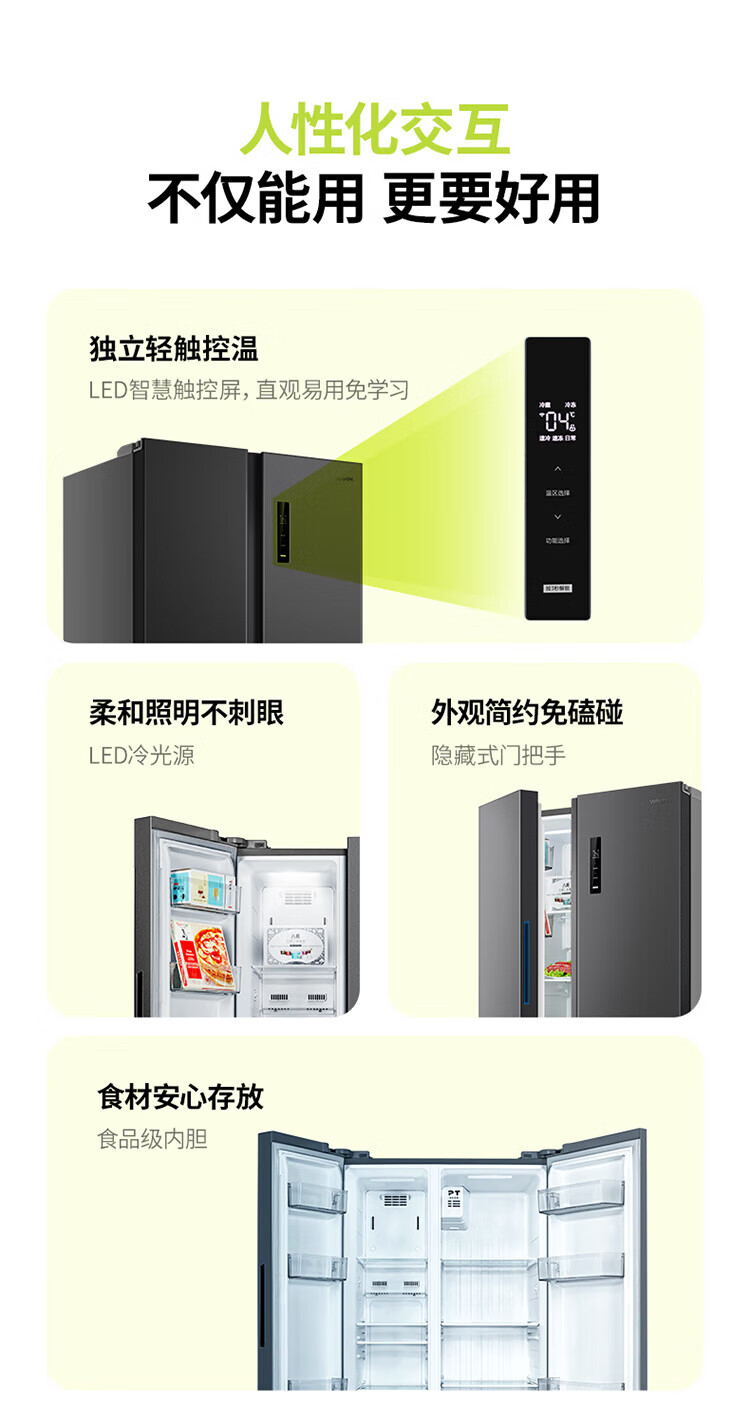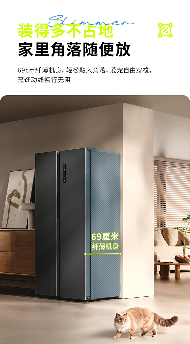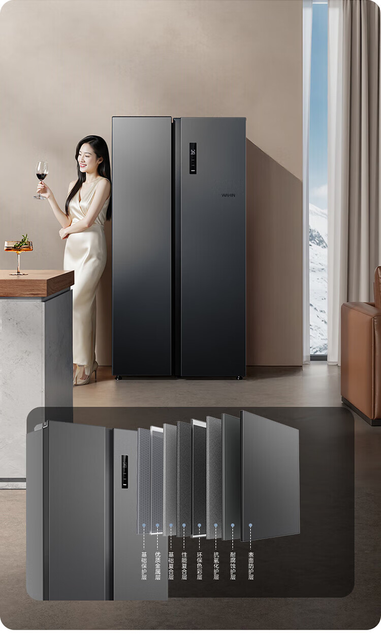 美的子品牌华菱对开门双开门家用节能一级能效变频风冷无霜净味超薄大容量冰箱 HR-589WKP灰 HR-589WKP/台