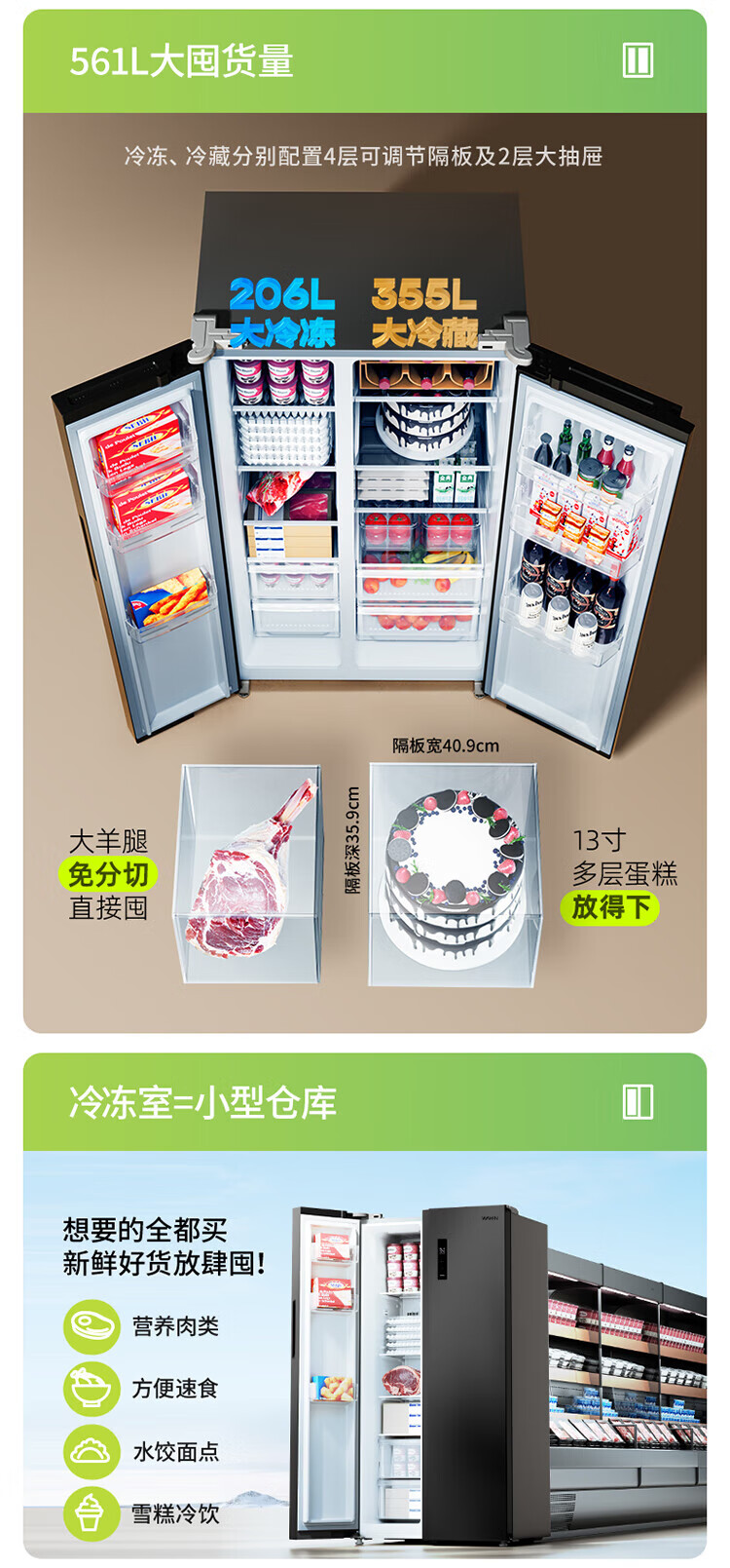 • 商品名称:美的子品牌华菱对开门双开门家用节能一级能效变频风冷无霜净味超薄大容量冰箱 HR-589WKP灰 HR-589WKP/台