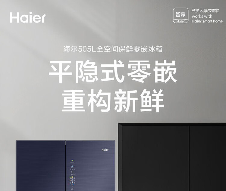 家用电器  > 大家电  > 冰箱  >  海尔/Haier  >  海尔(Haier)505升十字对开门冰箱 平隐式零嵌 智能恒温 阻氧干湿分储 全变温空间 BCD-505WGHTD14B5U1 晶釉蓝 BCD-505WGHTD14B5U1/台