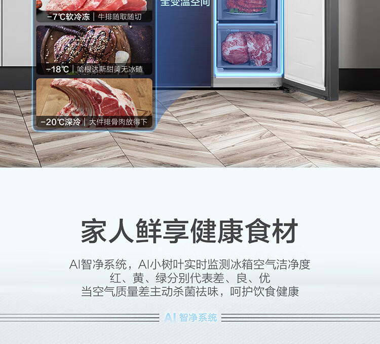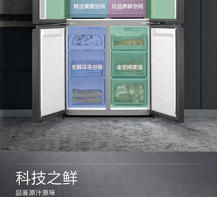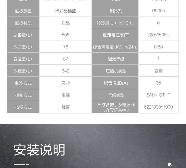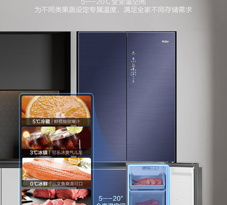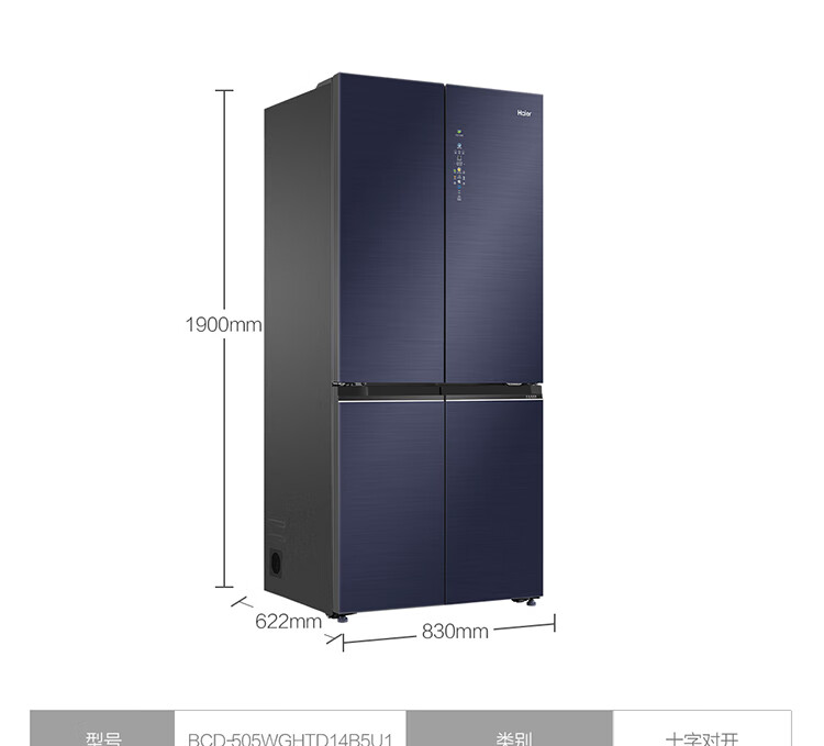 • 商品名称:海尔(Haier)505升十字对开门冰箱 平隐式零嵌 智能恒温 阻氧干湿分储 全变温空间 BCD-505WGHTD14B5U1 晶釉蓝 BCD-505WGHTD14B5U1/台