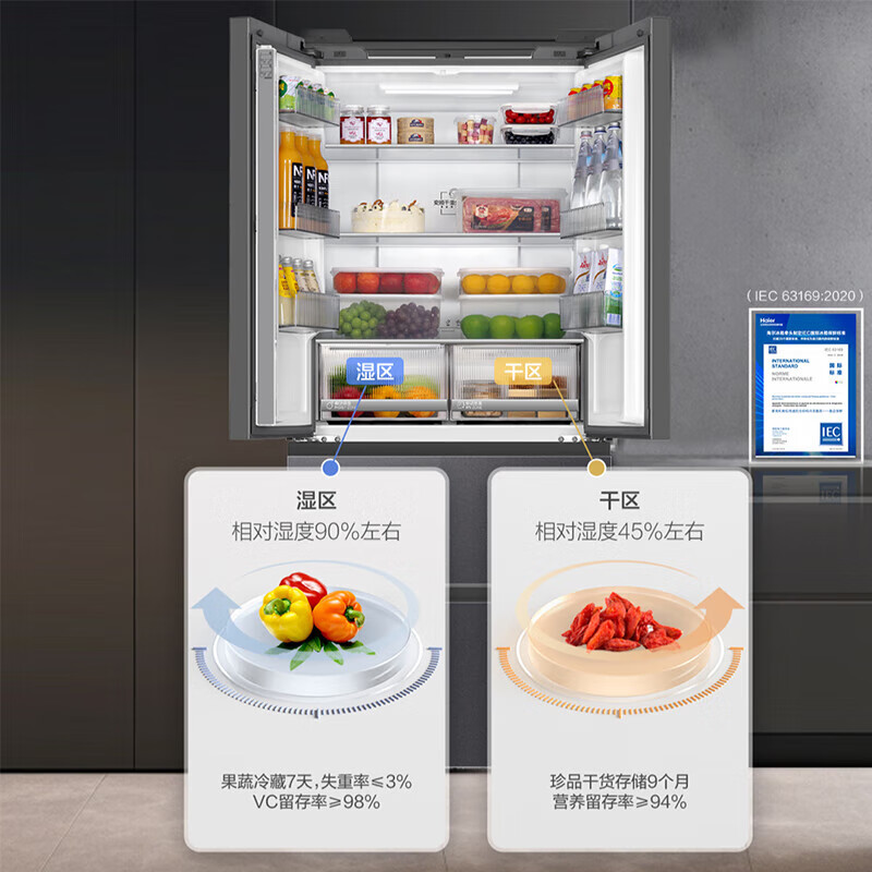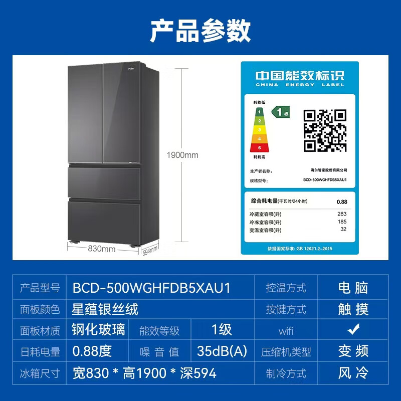 • 商品名称:海尔冰箱500升法式冰箱超薄风冷无霜一级能耗大冷冻保鲜黑金净化+阻氧干湿分储 BCD-500WGHFDB5XAU1 BCD-500WGHFDB5XAU1/个