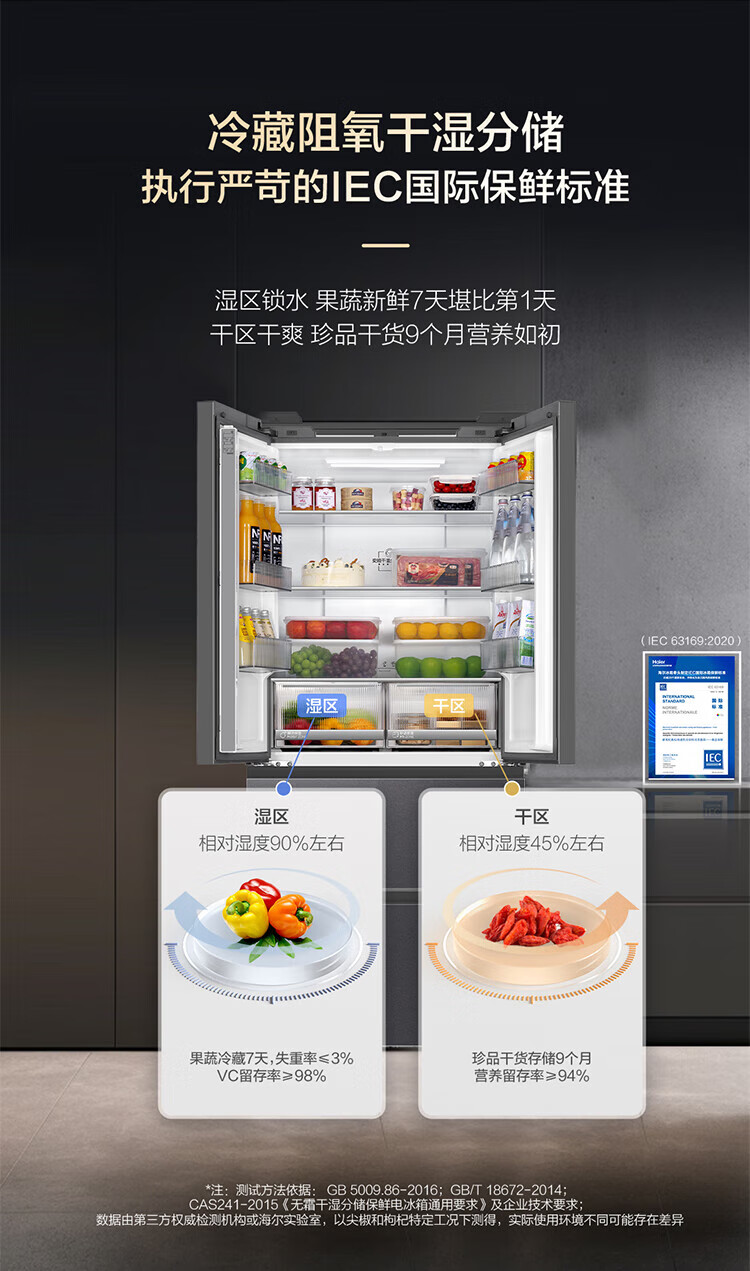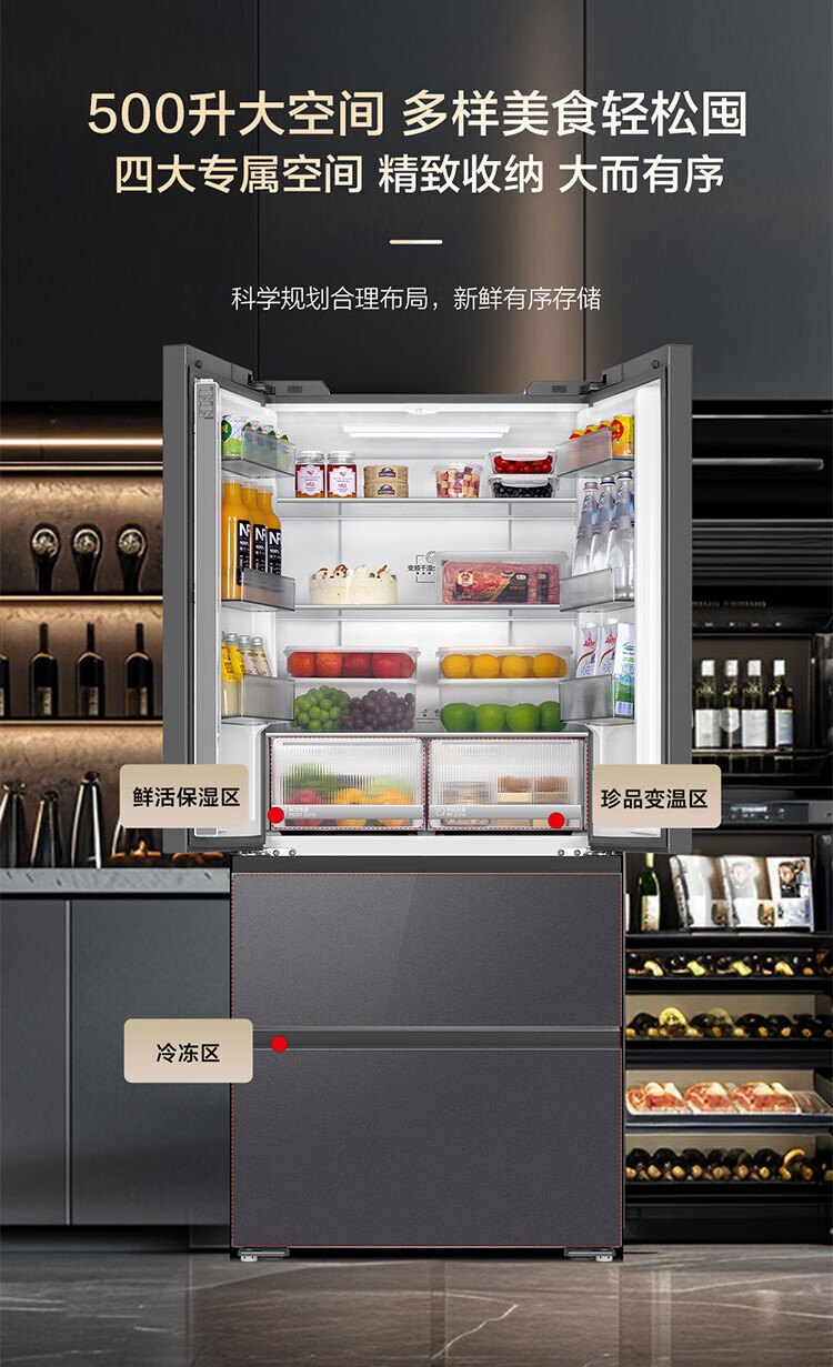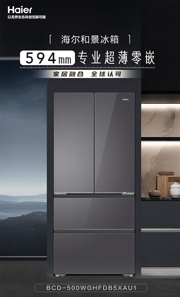 家用电器  > 大家电  > 冰箱  >  海尔/Haier  >  海尔冰箱500升法式冰箱超薄风冷无霜一级能耗大冷冻保鲜黑金净化+阻氧干湿分储 BCD-500WGHFDB5XAU1 BCD-500WGHFDB5XAU1/个