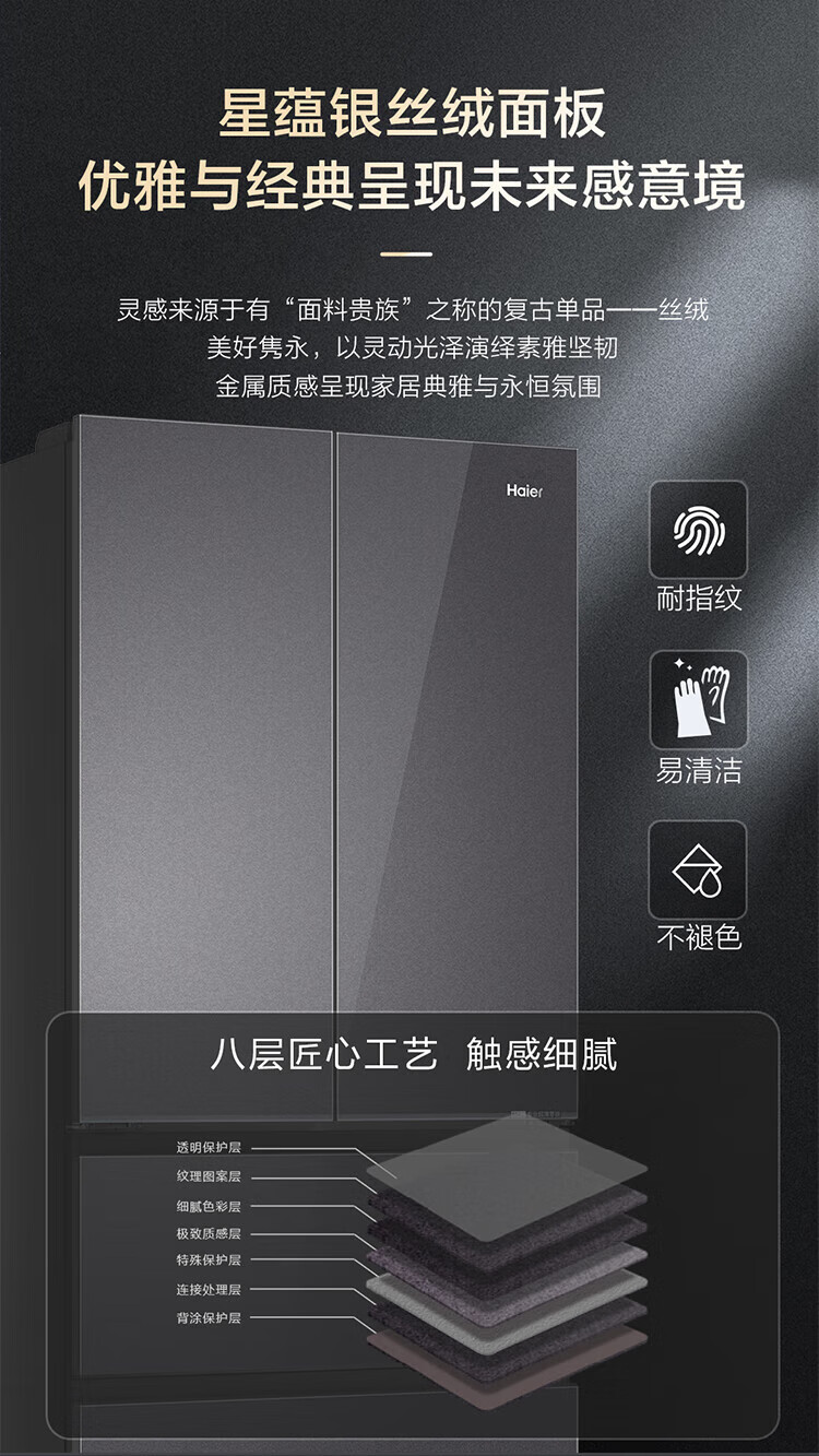 海尔冰箱500升法式冰箱超薄风冷无霜一级能耗大冷冻保鲜黑金净化+阻氧干湿分储 BCD-500WGHFDB5XAU1 BCD-500WGHFDB5XAU1/个