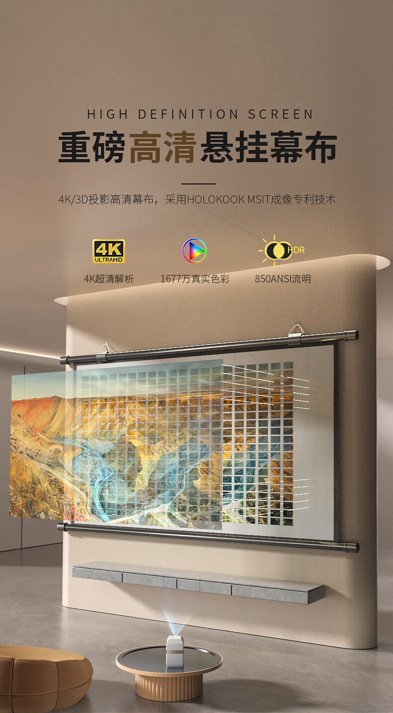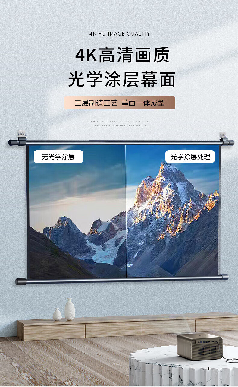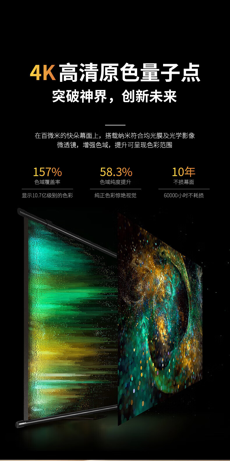 • 商品名称:快朵小屋(KUAIDUOXIAOWU)100英寸16:9支架壁挂两用幕布 白塑4K3D家用【免打孔】家用办公投影仪三色激光极米坚果小米爱普生 白塑简易支架幕布/条