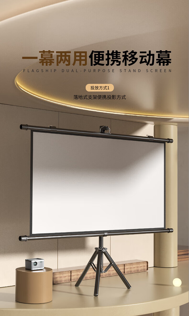 电脑、办公  > 办公设备  > 投影配件  >  快朵小屋/KUAIDUOXIAOWU  >  快朵小屋(KUAIDUOXIAOWU)100英寸16:9支架壁挂两用幕布 白塑4K3D家用【免打孔】家用办公投影仪三色激光极米坚果小米爱普生 白塑简易支架幕布/条