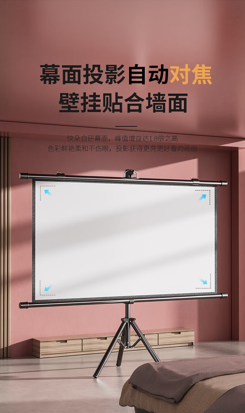 快朵小屋(KUAIDUOXIAOWU)100英寸16:9支架壁挂两用幕布 白塑4K3D家用【免打孔】家用办公投影仪三色激光极米坚果小米爱普生 白塑简易支架幕布/条