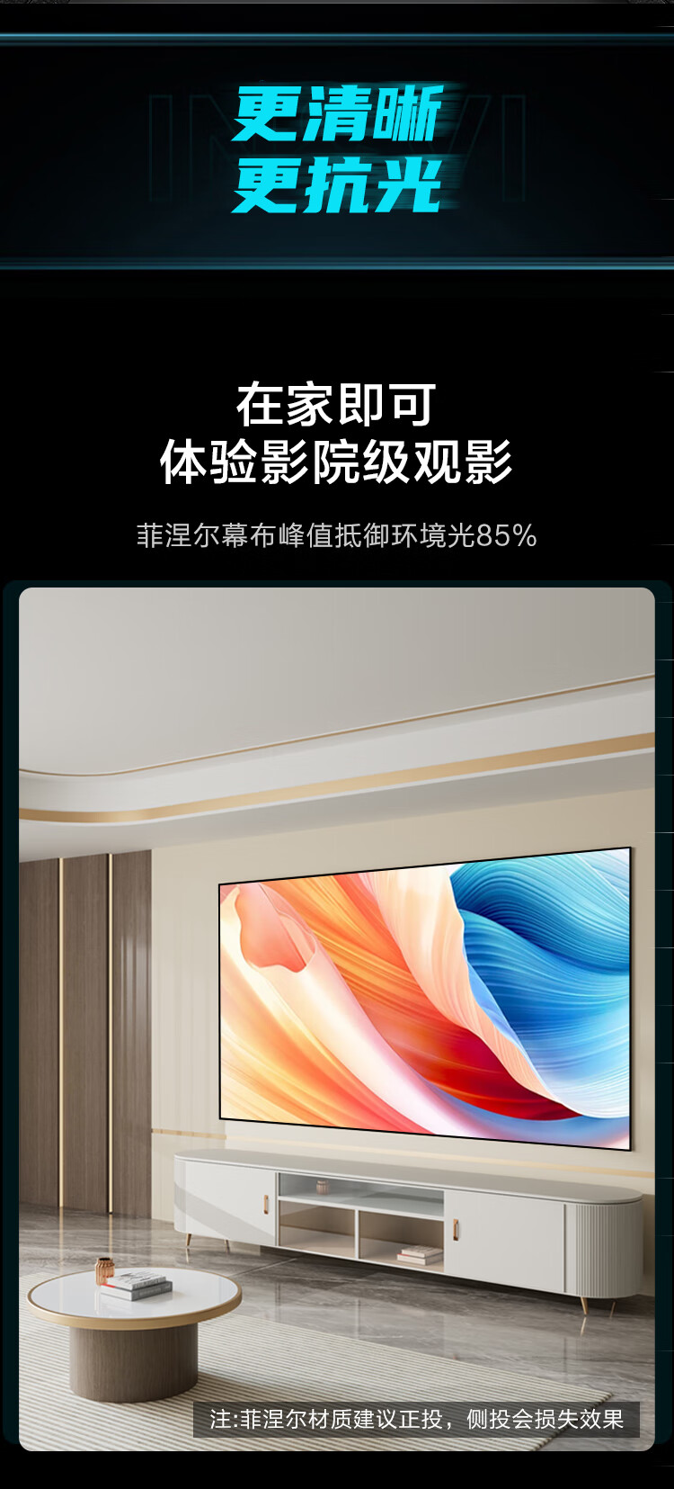 电脑、办公  > 办公设备  > 投影配件  >  京东京造  >  京东京造家用投影幕布 壁挂画框幕布100英寸 抗光菲涅尔软屏 适配坚果极米小米投影仪中长焦投影机幕 100英寸16:9软屏铝框菲涅尔幕布/箱