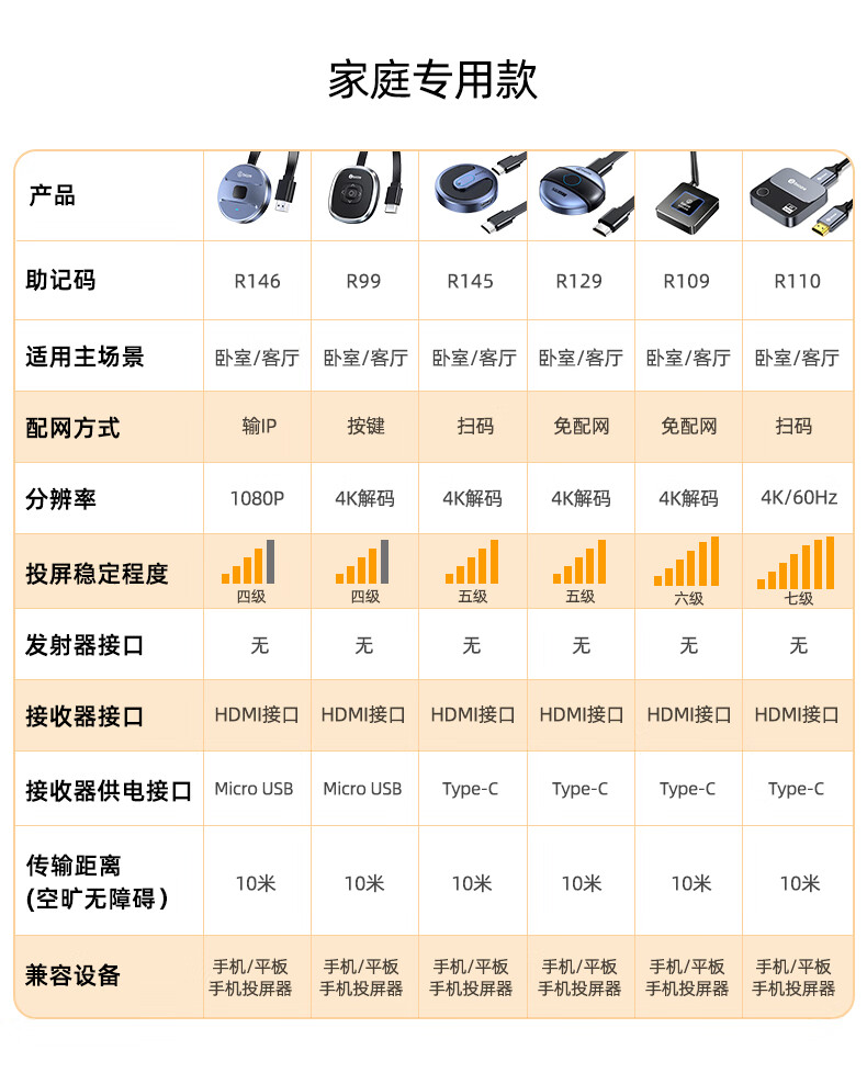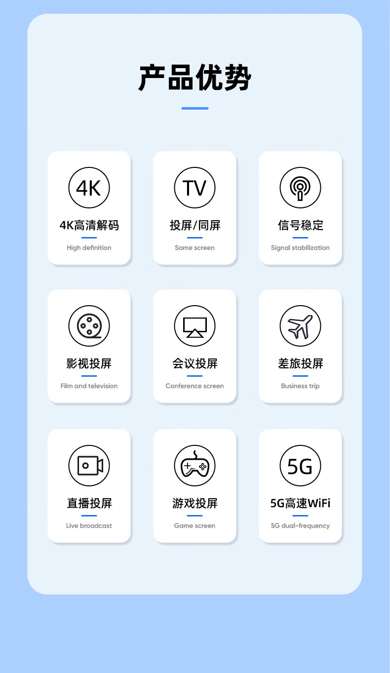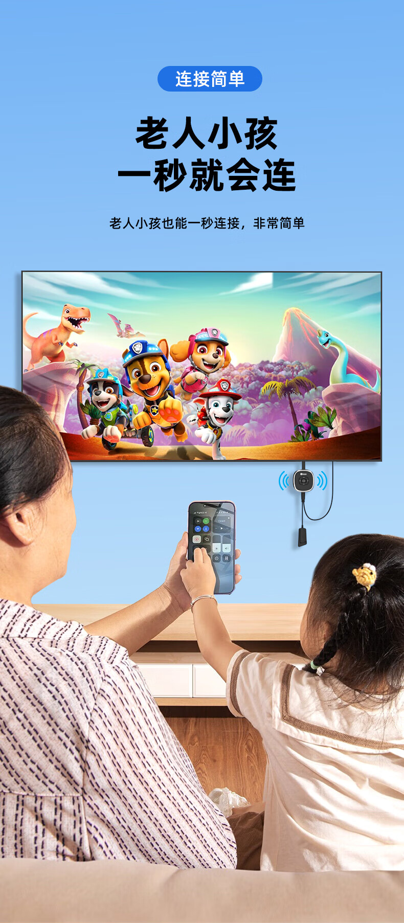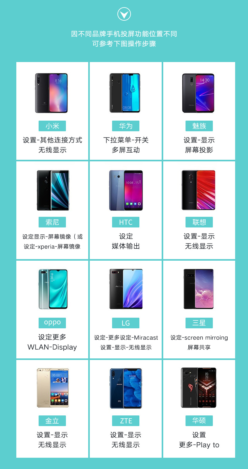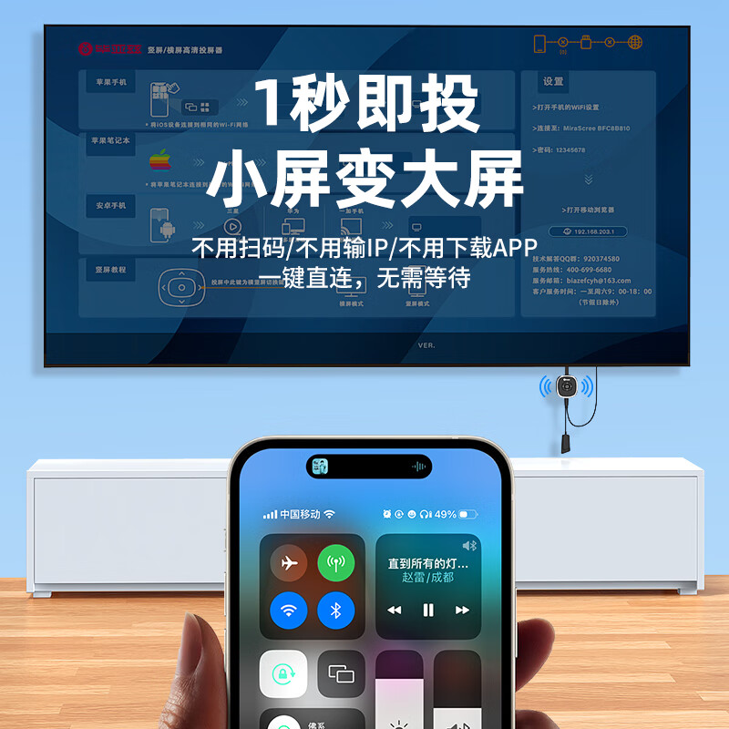 包装清单: 毕亚兹 手机无线投屏器(R99-经典款)*1 信号放大器*1 说明书 *1 纸盒包装 *1