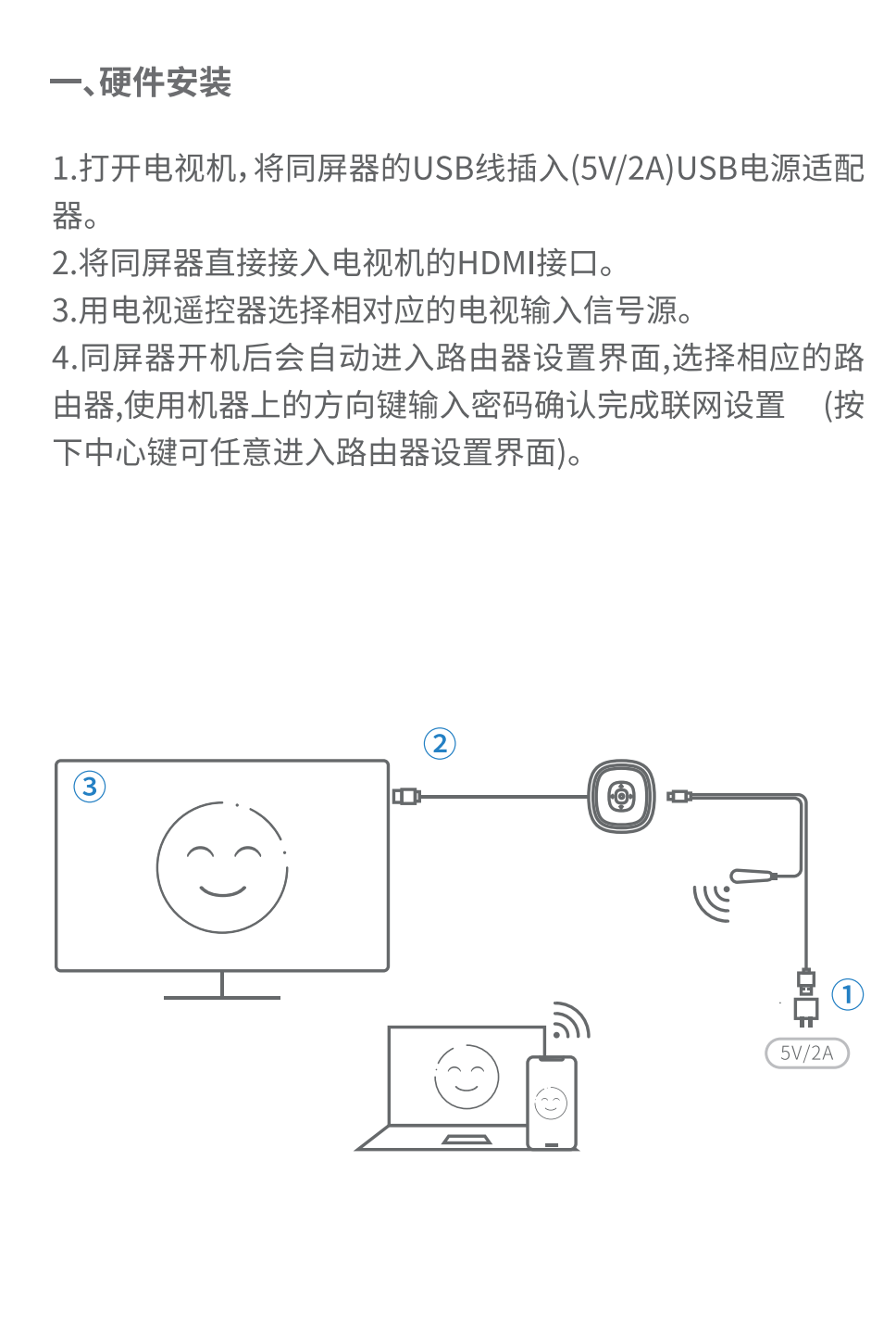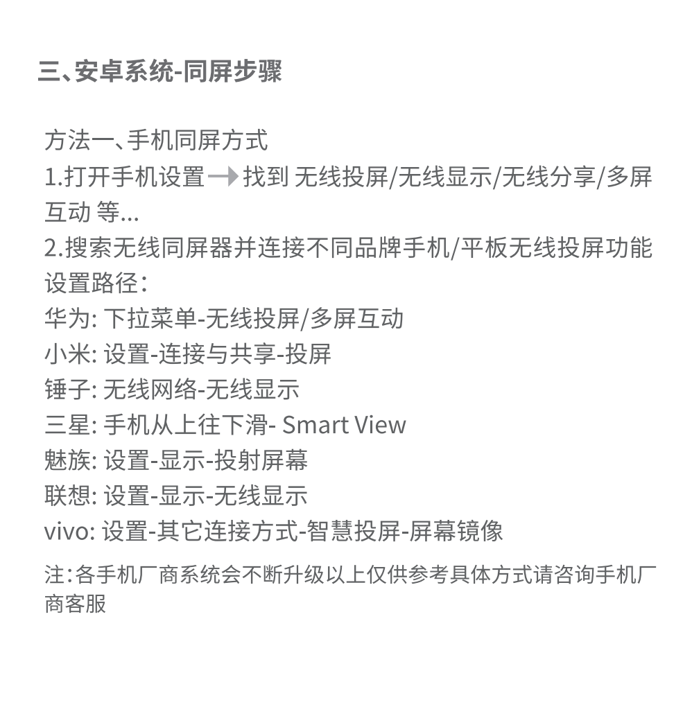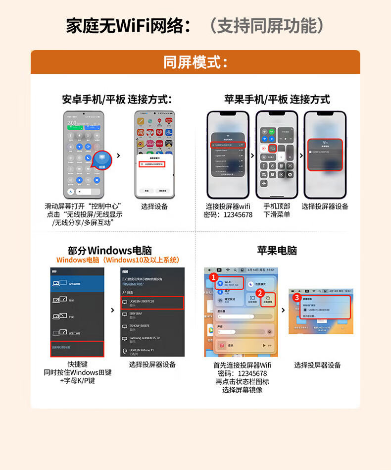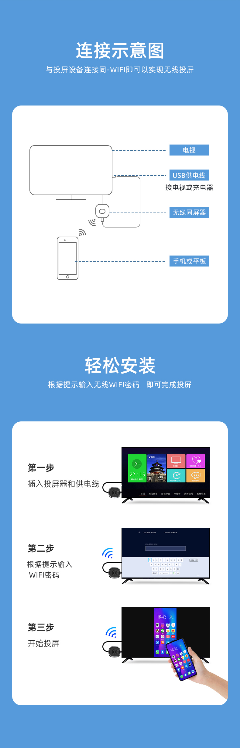 包装清单: 毕亚兹 手机无线投屏器(R99-经典款)*1 信号放大器*1 说明书 *1 纸盒包装 *1