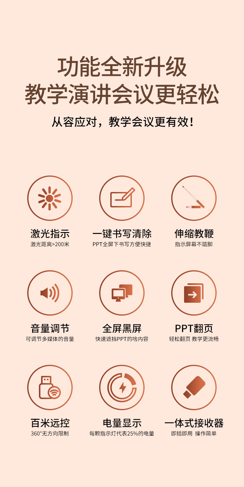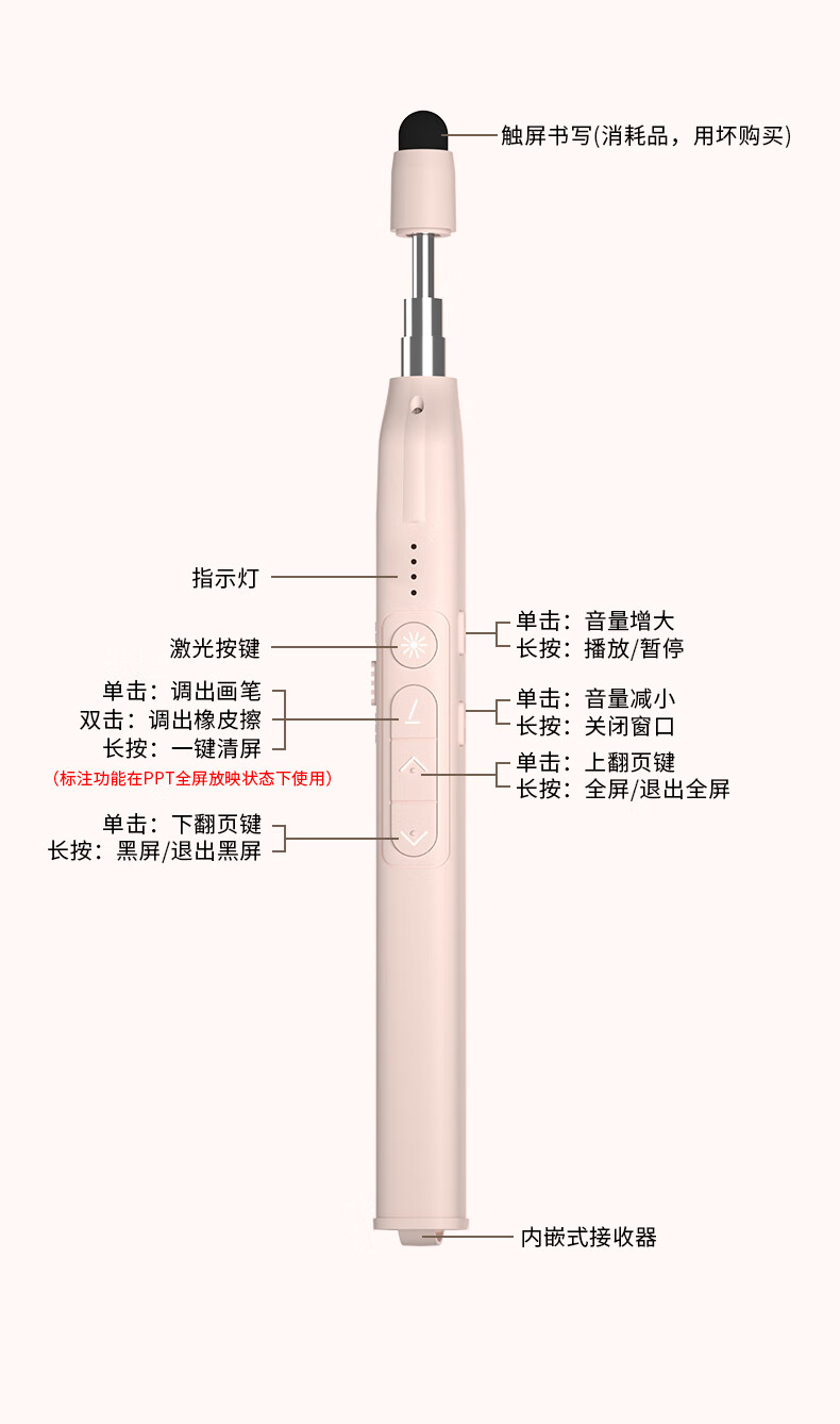 • 商品名称:惠斯特K9翻页笔教师用多功能遥控教鞭笔适用希沃白板PPT触控笔红外线投影幕布专用红光激光笔课件投影笔 K9/支