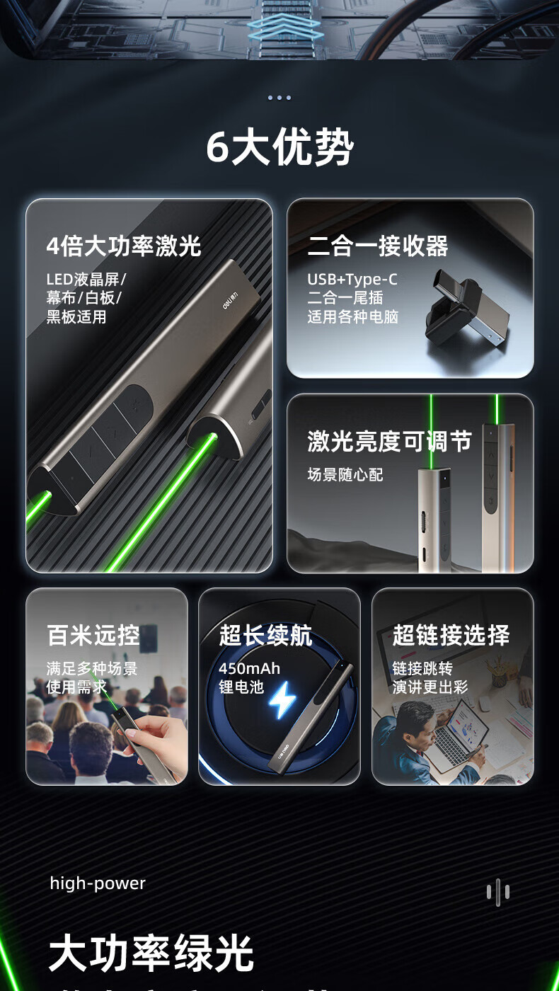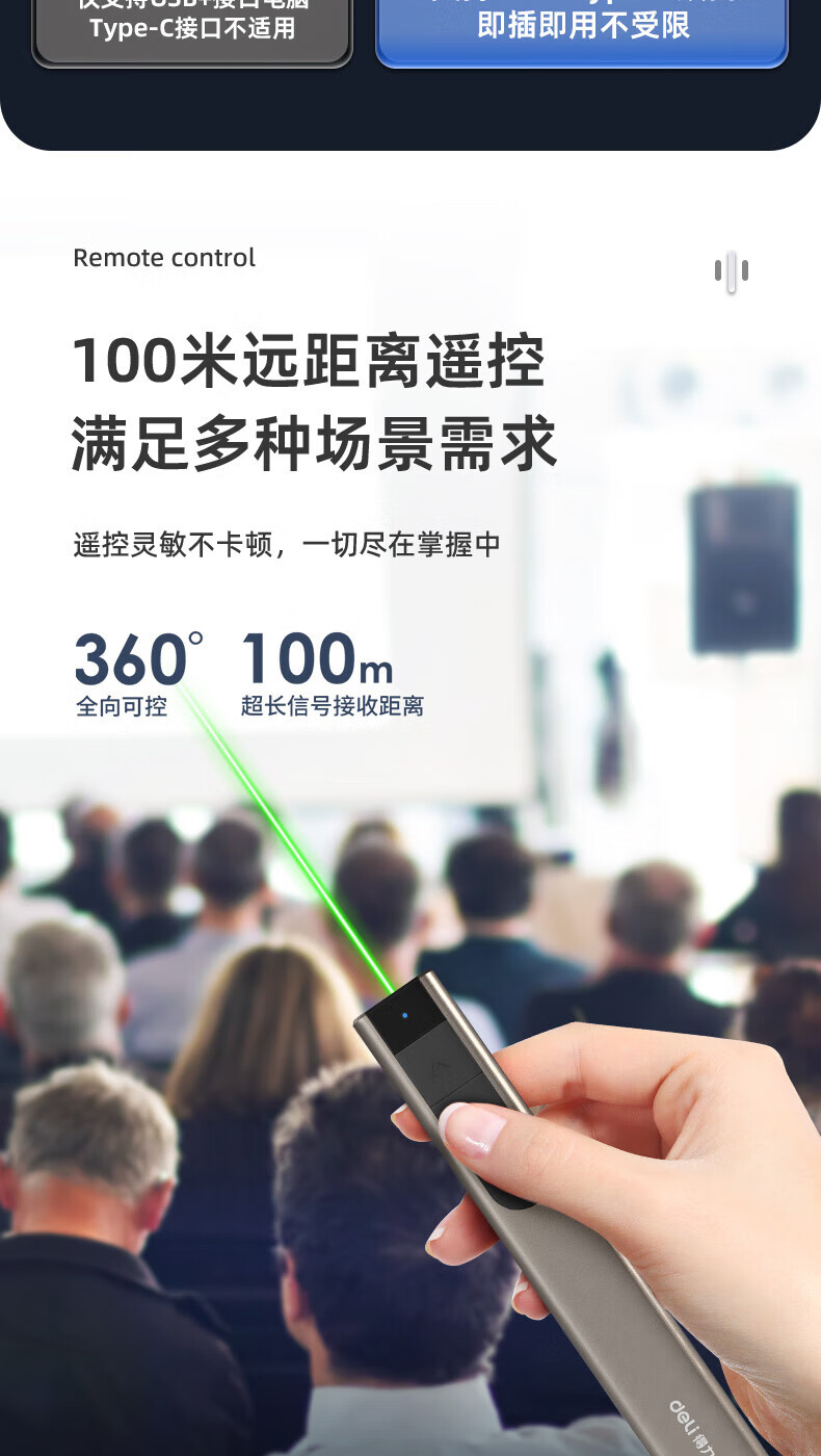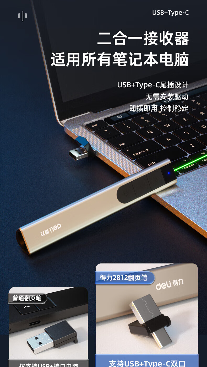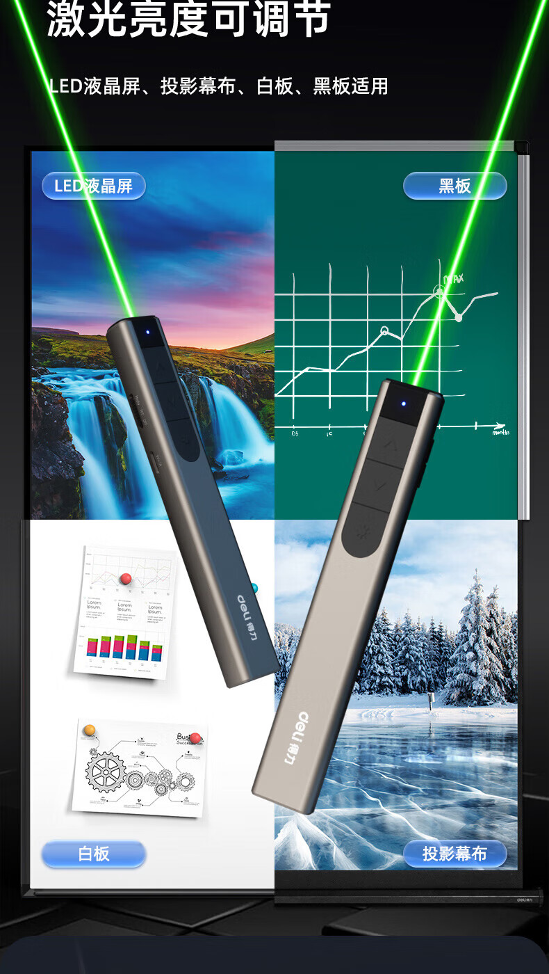 • 商品名称:得力(deli)激光笔 绿光大功率翻页笔 大型会议指示 LED液晶屏幕布适用 大讲堂激光翻页笔2812 2812/个