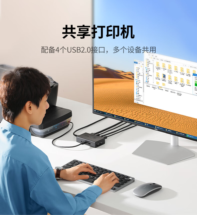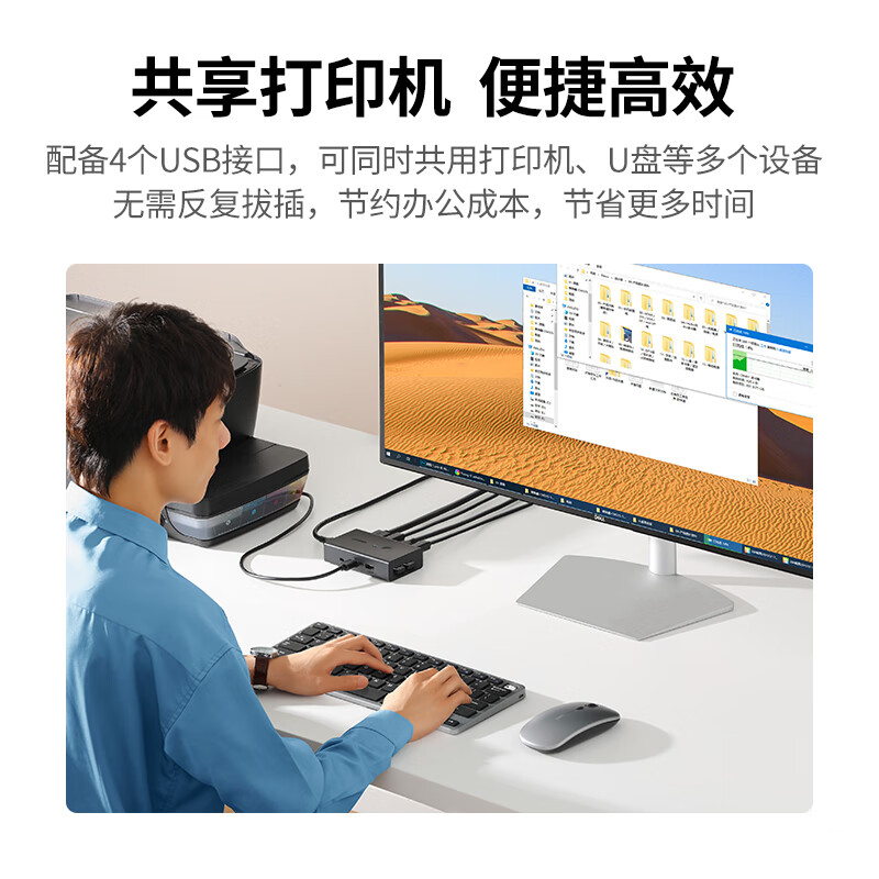 商品名称: 绿联kvm切换器二进一出共享鼠标键盘显示器 HDMI2.0KVM视频切屏器4K60Hz高清电脑共用USB打印机90478 90478/台