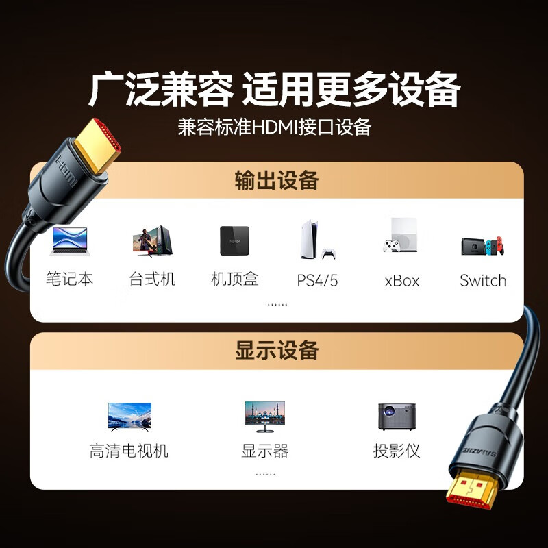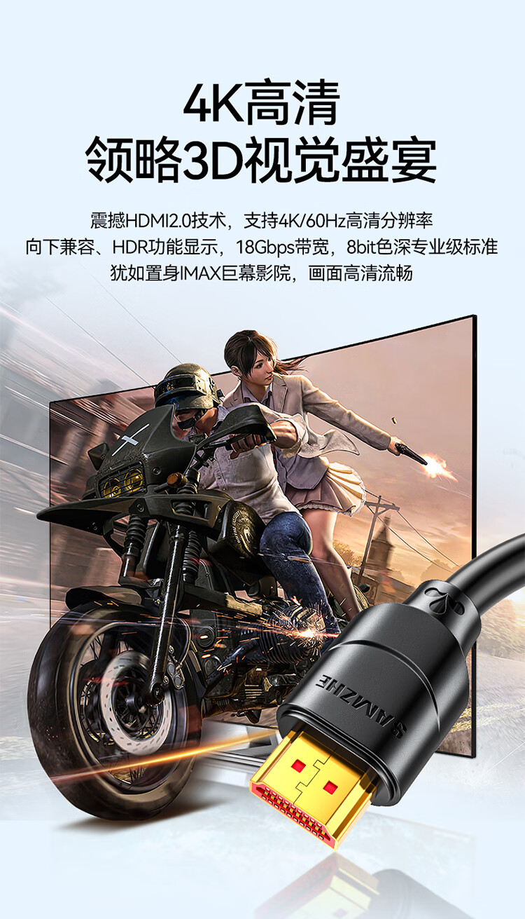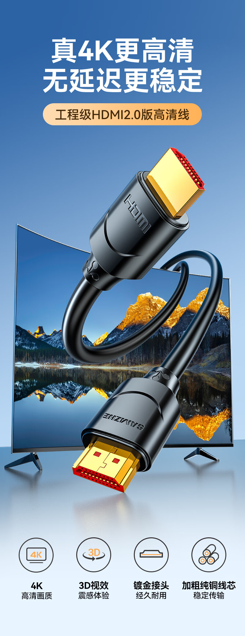 • 商品名称:山泽HDMI线2.0版 4K数字高清线 2米 3D视频线工程级 投影仪笔记本电脑电视机机顶盒数据连接线 20SH8 20SH8/条