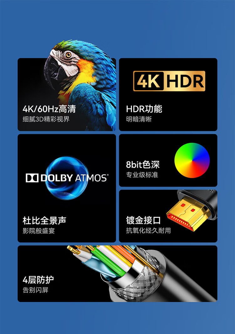 包装清单: HDMI线 丨 防尘帽 丨 保修卡丨 合格证
