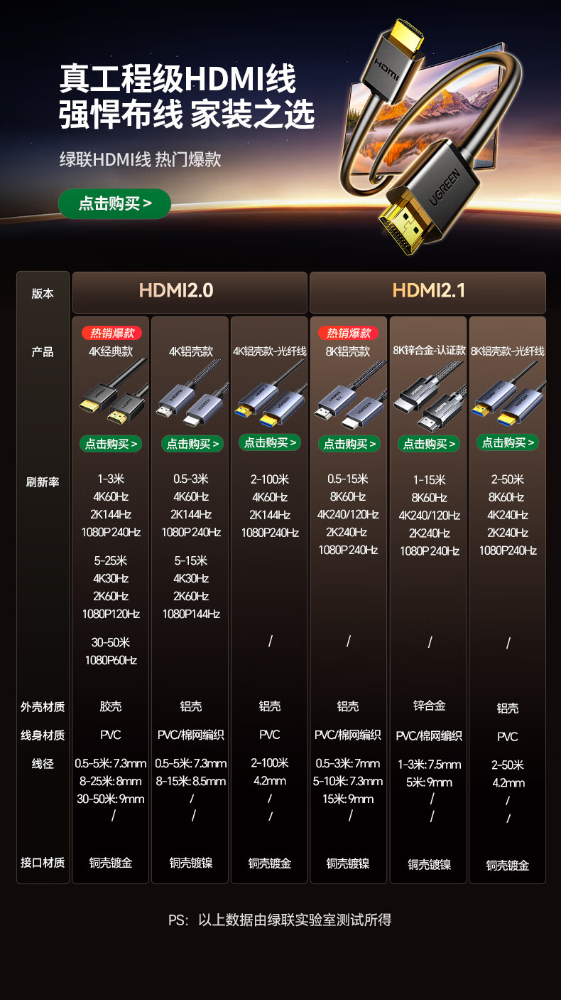 商品名称: 绿联HDMI线2.0版4K数字高清线10米视频线工程级 笔记本电脑机顶盒接电视投影仪显示器数据连接线10110 10110/条