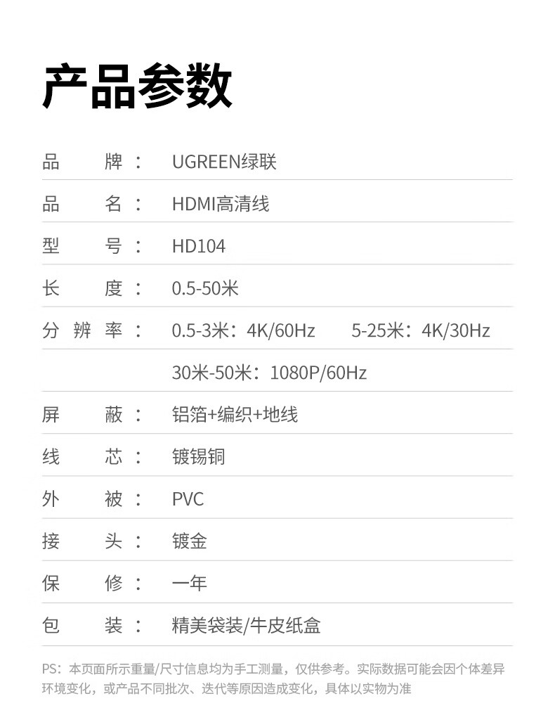 包装清单: HDMI高清线10米 × 1
