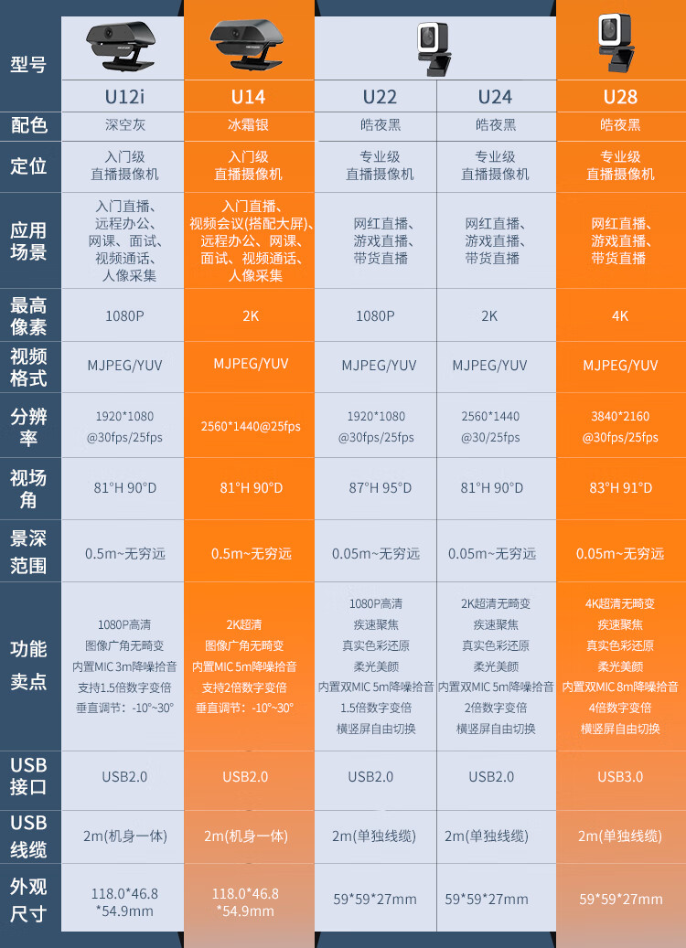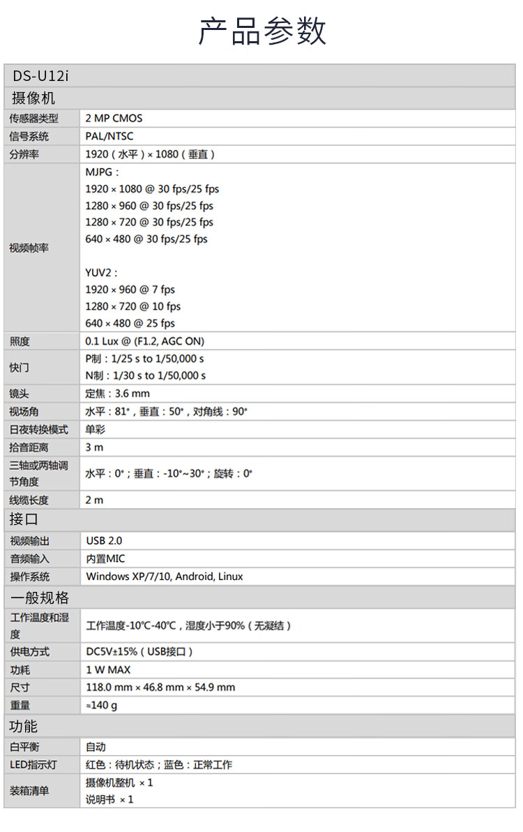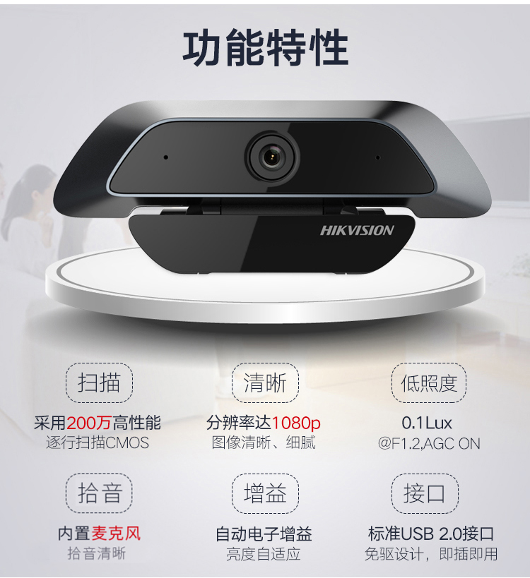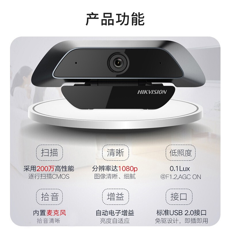 • 商品名称:海康威视(HIKVISION)DS-U12i电脑摄像头 200万高清带麦克风免驱办公视频会议直播网课考研复试 U12i DS-U12i/台