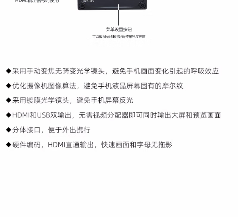 • 商品名称:中鲁百视通 魔客仕 HDC70-6-12mm工业相机适配视频通 屏幕翻拍1600W拍照不反光优化 反拍仪 魔客仕/台