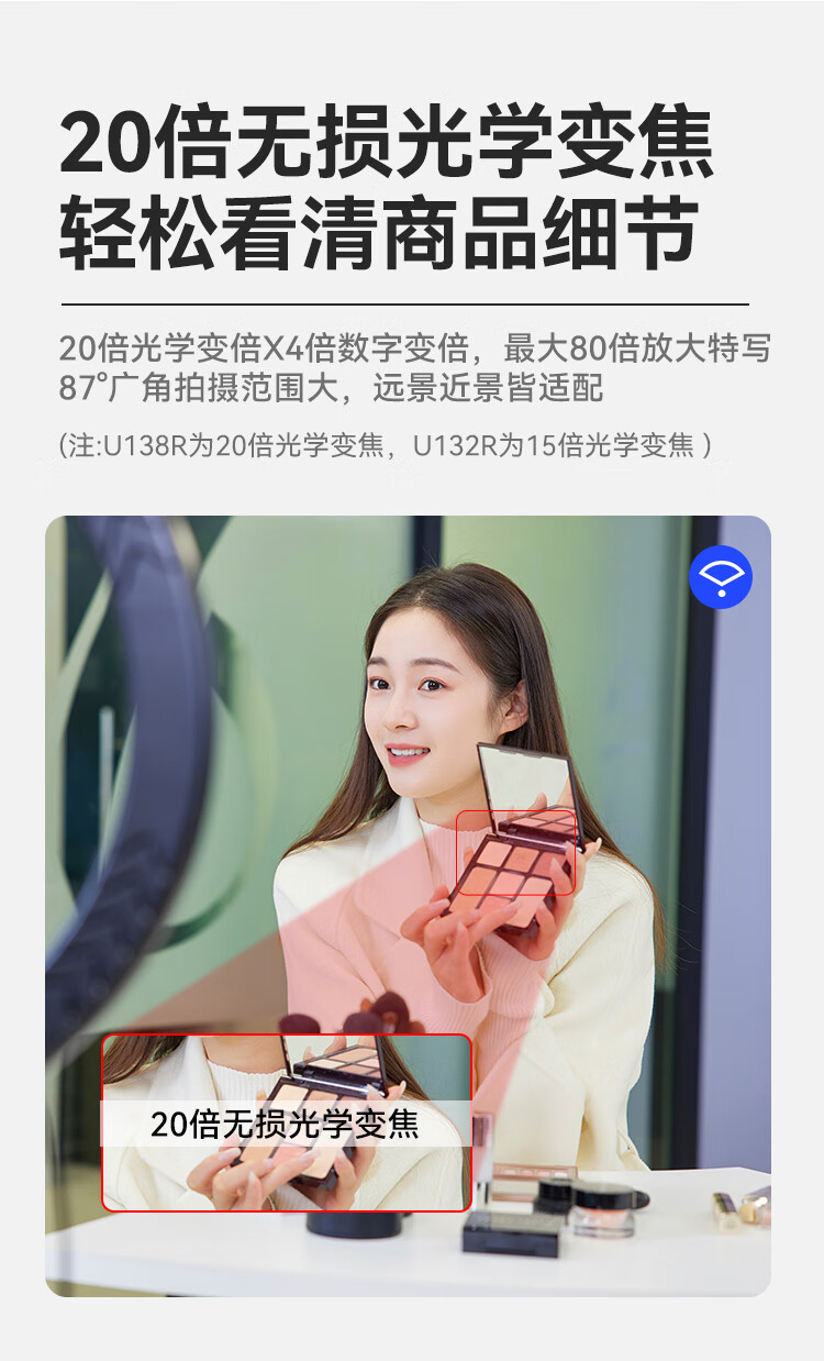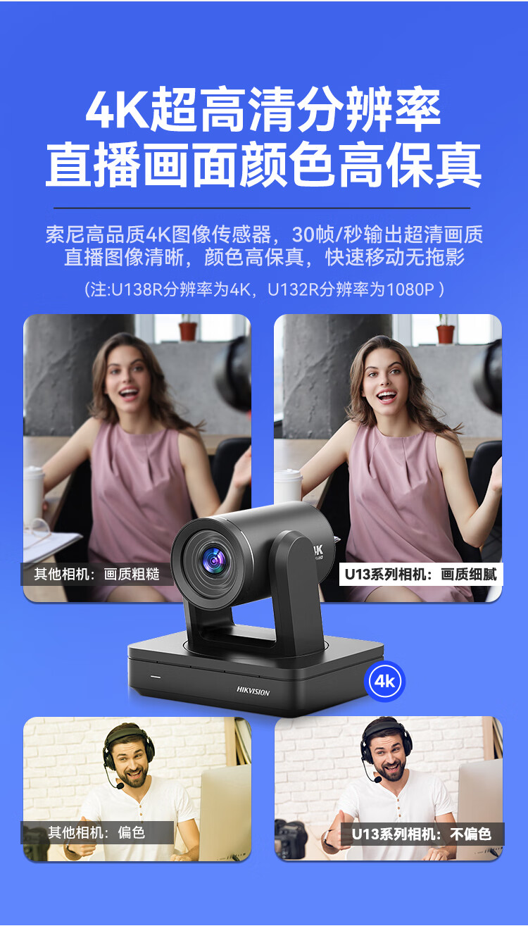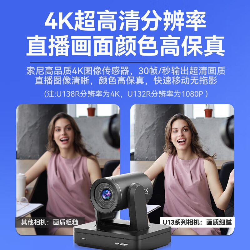 商品名称: HIKVISION海康威视直播摄像头4K超清摄像机竖屏80倍变焦自动对焦网络娱乐抖音快手美颜带货设备U138R DS-UVC-U138R/个