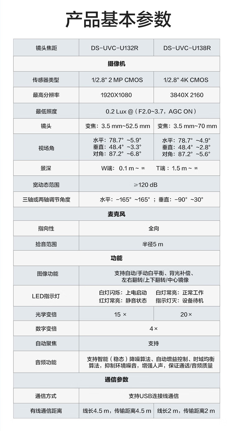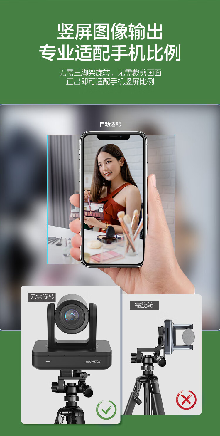 • 商品名称:HIKVISION海康威视直播摄像头4K超清摄像机竖屏80倍变焦自动对焦网络娱乐抖音快手美颜带货设备U138R DS-UVC-U138R/个