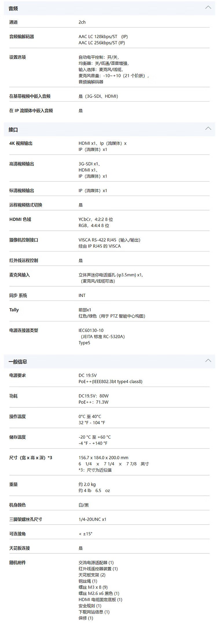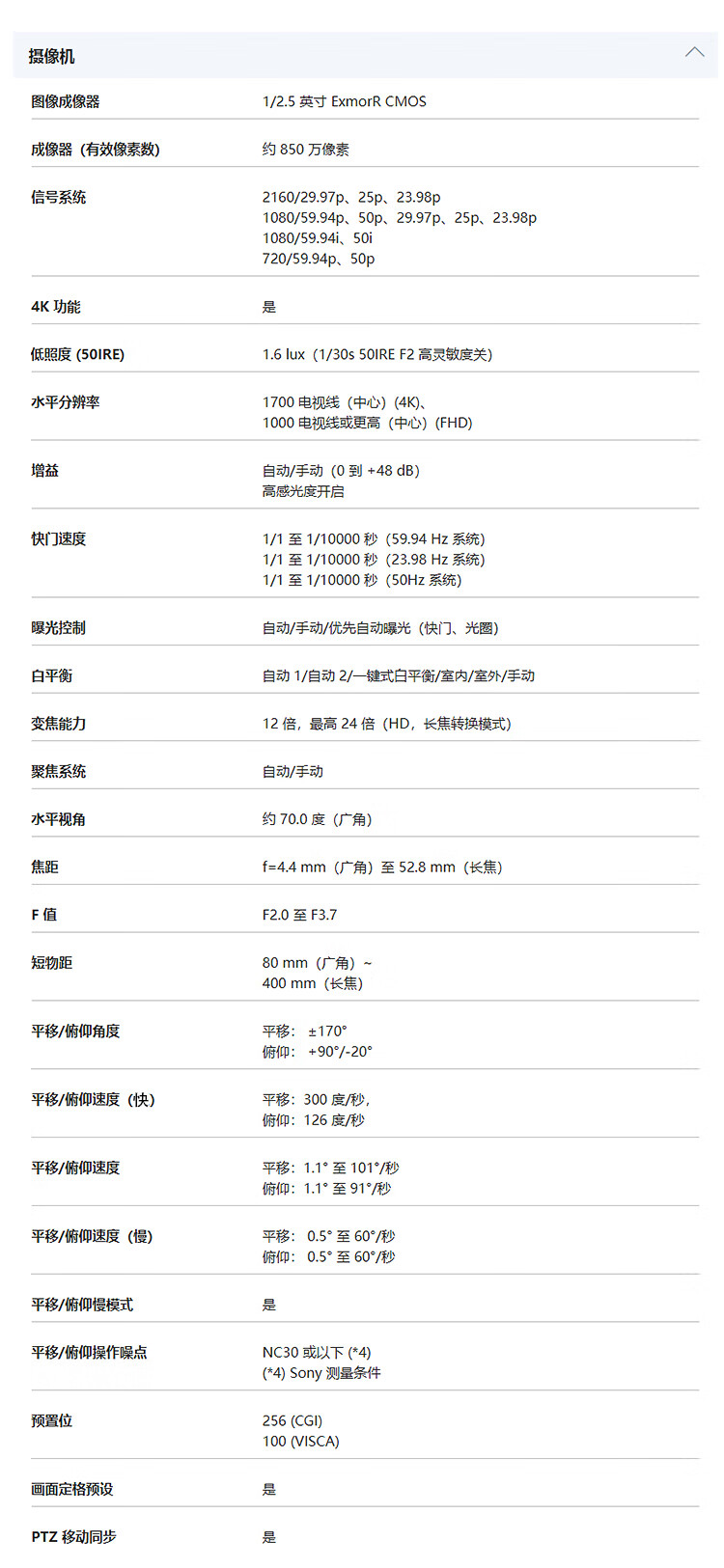 • 商品名称:索尼(SONY)视频会议摄像头SRG-A12/摄像机NDI/超高清4K/12倍光学变焦/3G-SDI/HDMI接口 SRG-A12/只