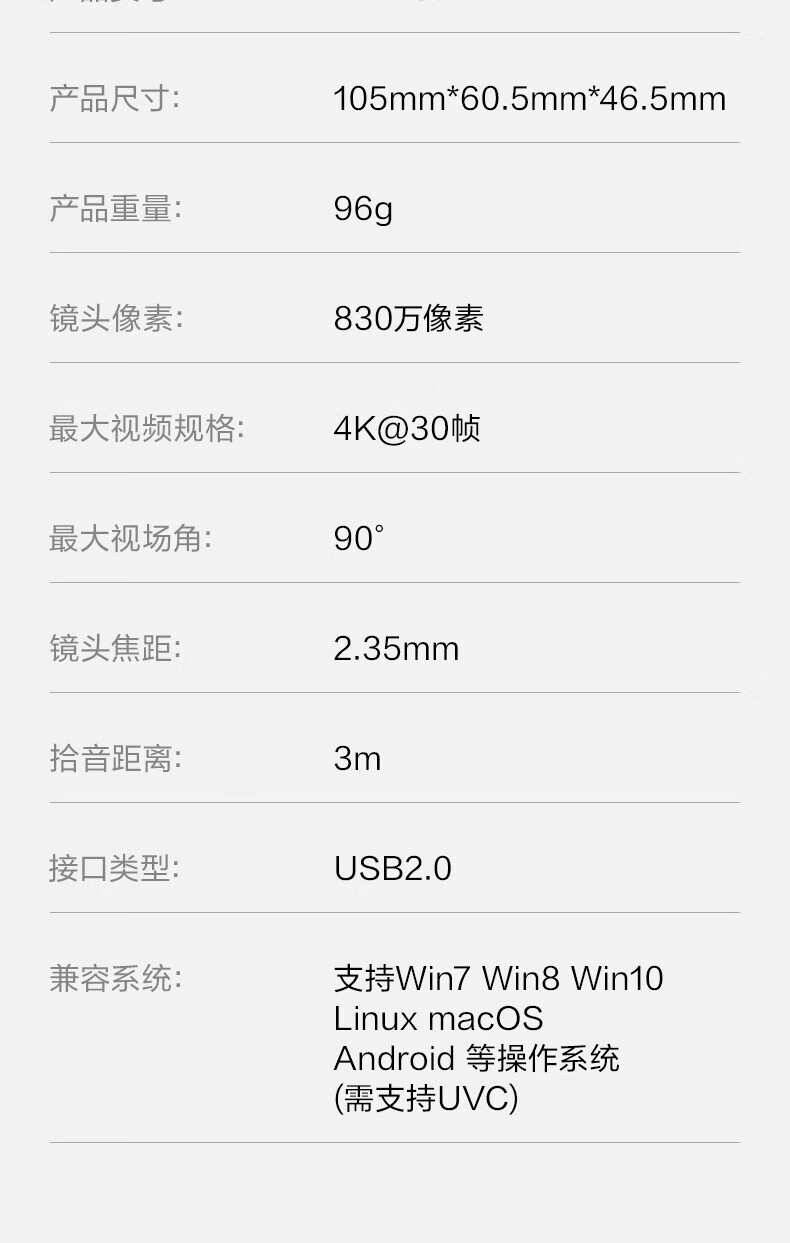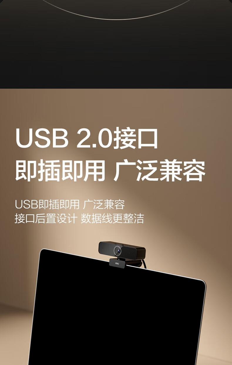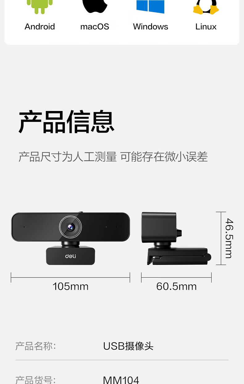 • 商品名称:得力 摄像头4K高清直播带麦克风自动对焦 USB外置摄像头 适用台式机笔记本视频会议网课视频通话 MM104 MM104/个