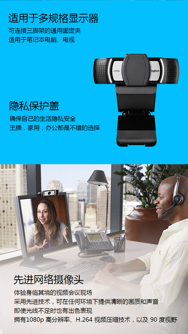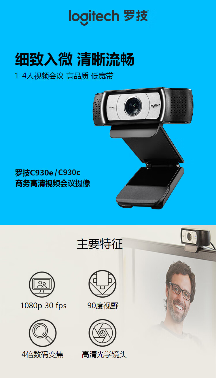 • 商品名称:罗技(Logitech)C930c高清摄像头电脑笔记本网络直播视频会议在线教育 C930c C930c/台