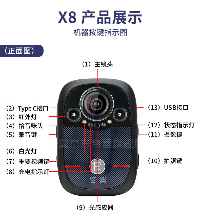 电脑、办公  > 外设产品  > 摄像头  >  警眸  >  警眸警翼X8执法记录仪防爆1440P高清红外夜视安霸芯片IP68防水 64G IP68/个