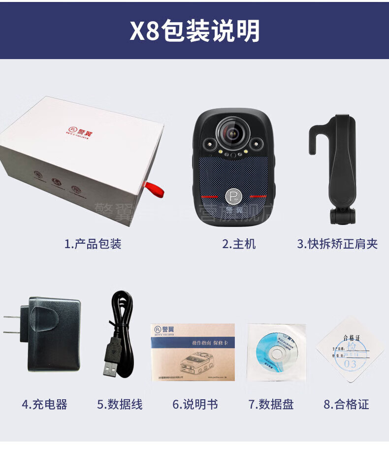 商品名称: 警眸警翼X8执法记录仪防爆1440P高清红外夜视安霸芯片IP68防水 64G IP68/个