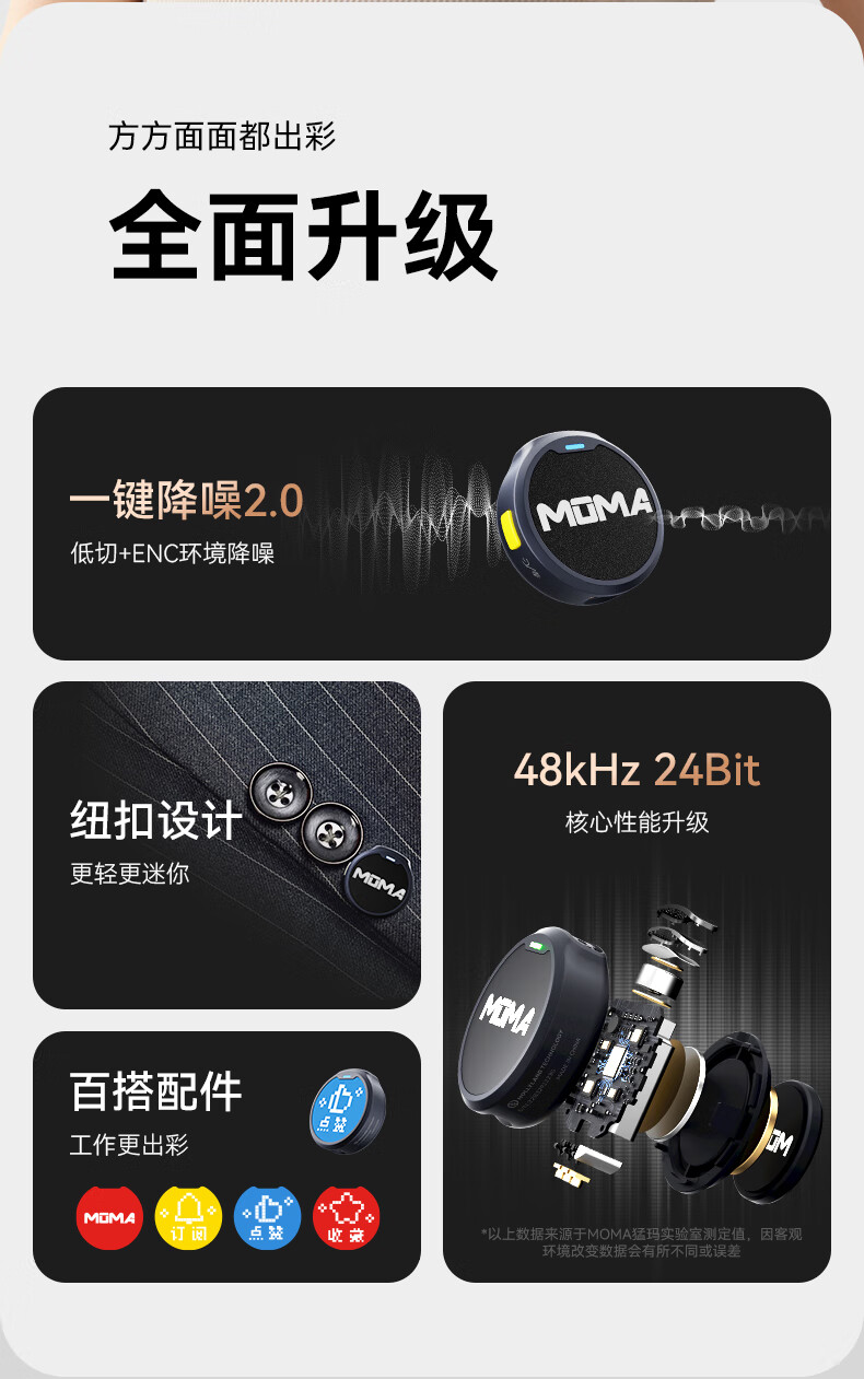 数码  > 影音娱乐  > 麦克风  >  猛玛/MOMA  >  猛玛【焕新补贴15%】LARK MIX直播麦克风无线领夹收音麦主播专用降噪猛犸一拖二采访录音收音器 Lark Mix/件