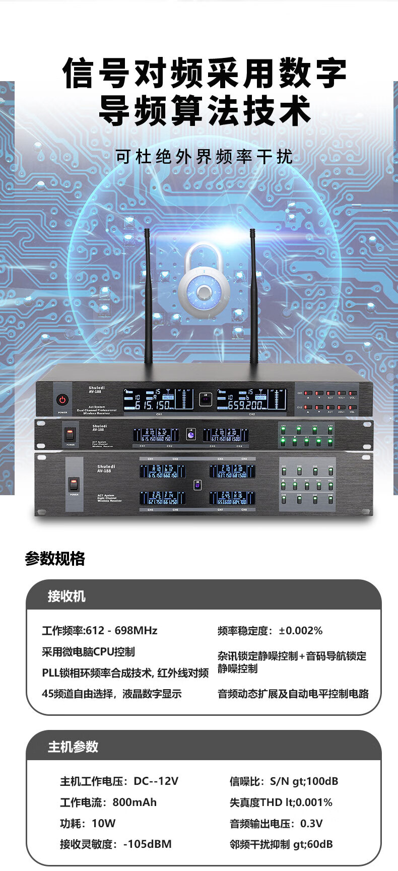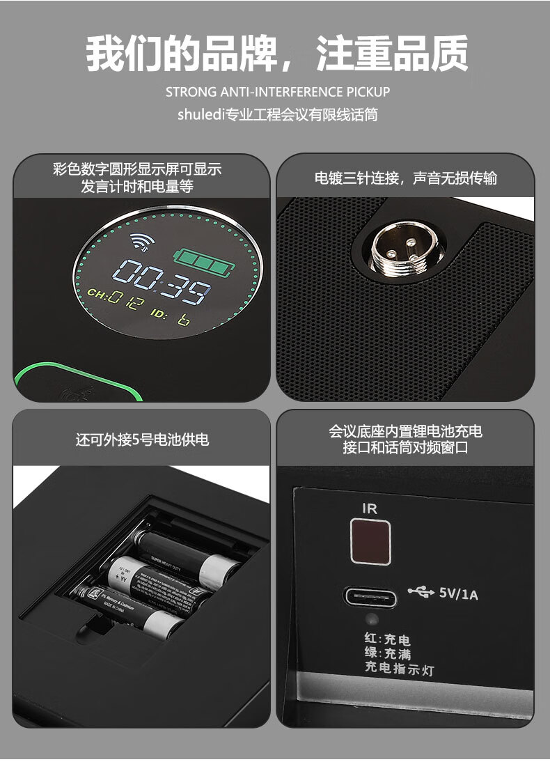 商品名称: 舒乐迪(shuledi)AV-188国产化会议室U段无线话筒一拖二 可调频一键对频培训演讲K歌手持话筒麦克风(配2手持可充电 AV-188/套