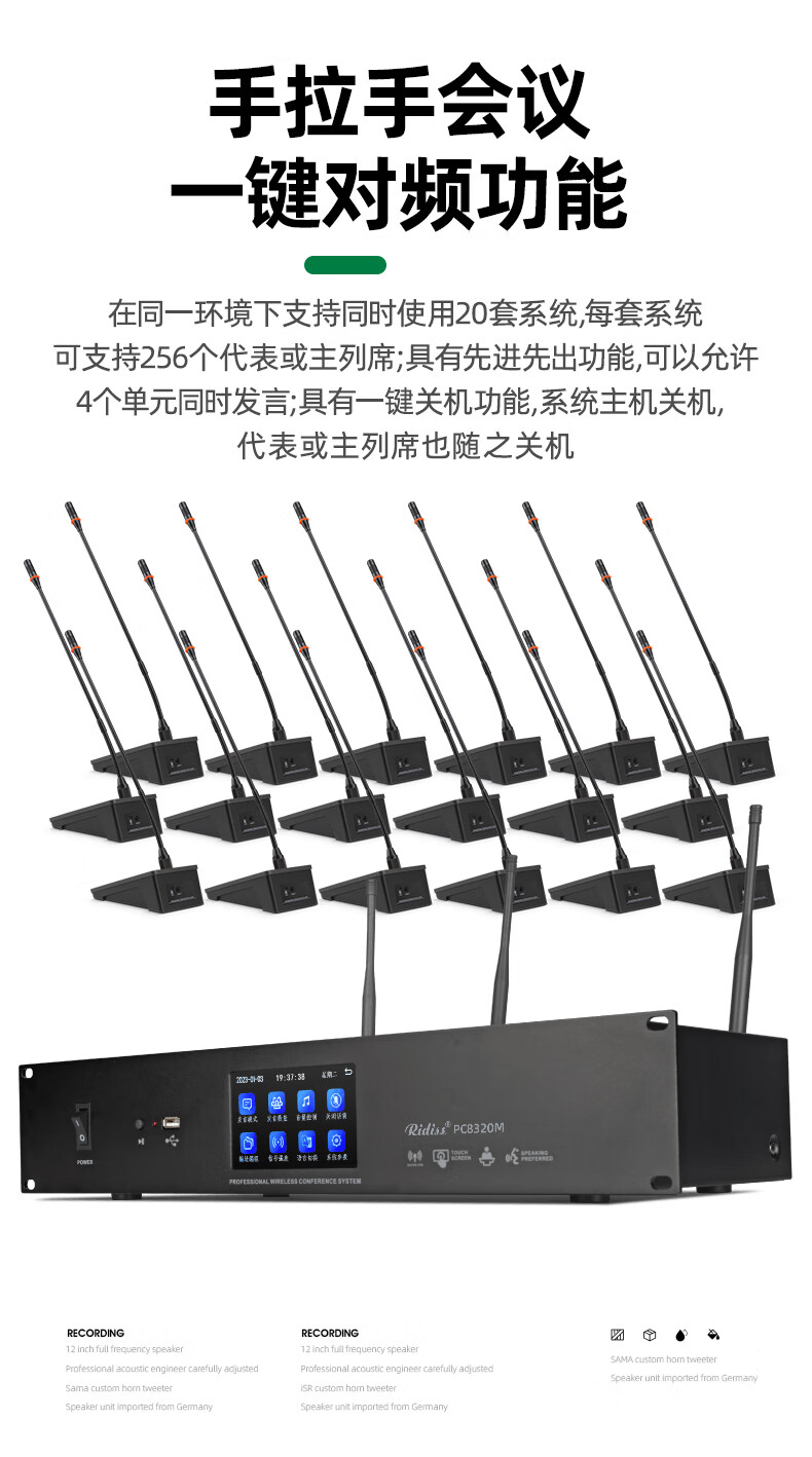 • 商品名称:RidissPC8320数字手拉手会议系统 无线鹅颈方杆话筒视像型电容麦克风 PC8320/台